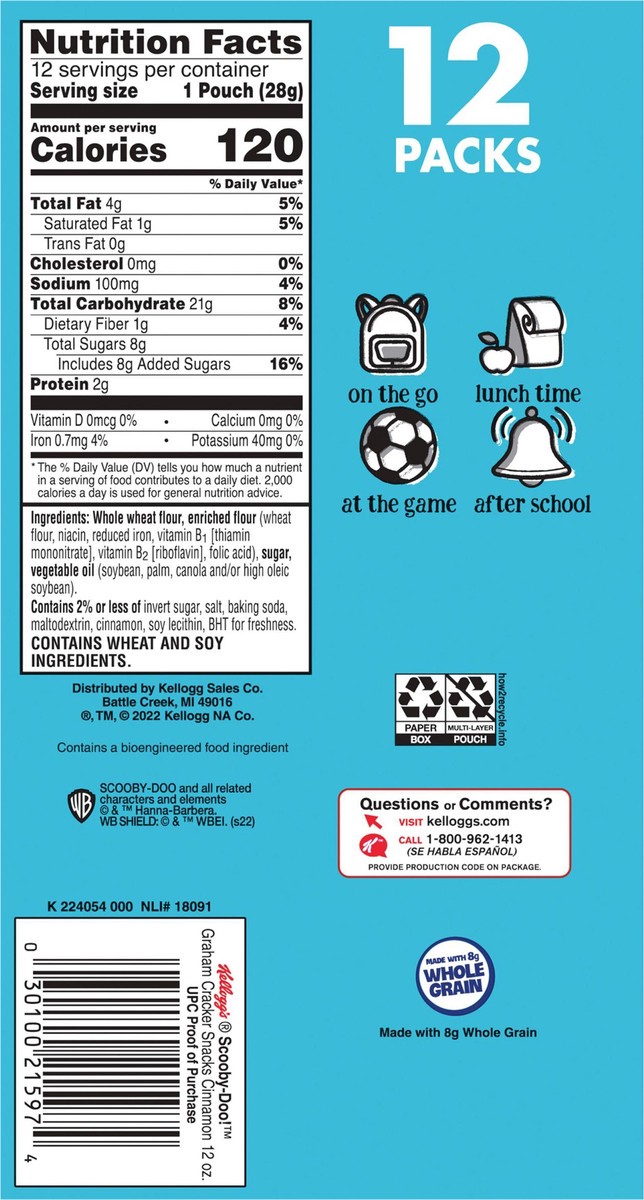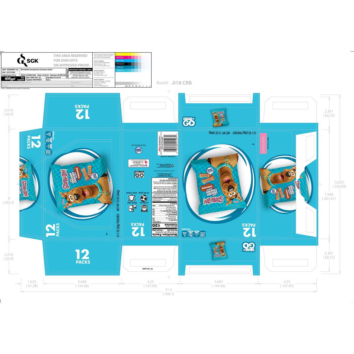 Kellogg's Scooby-Doo! Cinnamon Baked Graham Cracker Snacks 12 Count - 12 Oz