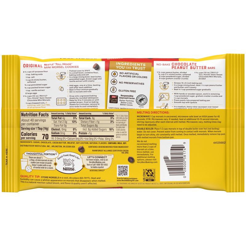 - BAKE NOW OR LATER: Whether you're baking brownies today or planning ahead, Toll House mini semi sweet chocolate chips are pantry-friendly and ready when you are. Store in a cool, dry place and use as needed — no thawing, no hassle