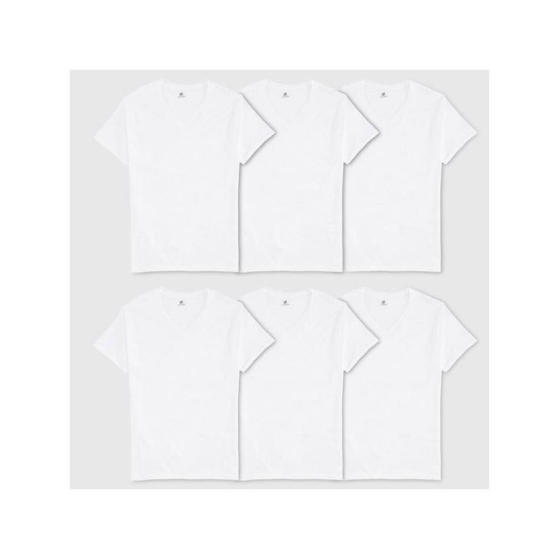 Hanes Men's White V-neck Tees are available in a convenient pack of 6. With super soft ComfortSoft fabric, these tees offer everyday, all day comfort from the brand you trust. FreshIQ advanced odor pr…