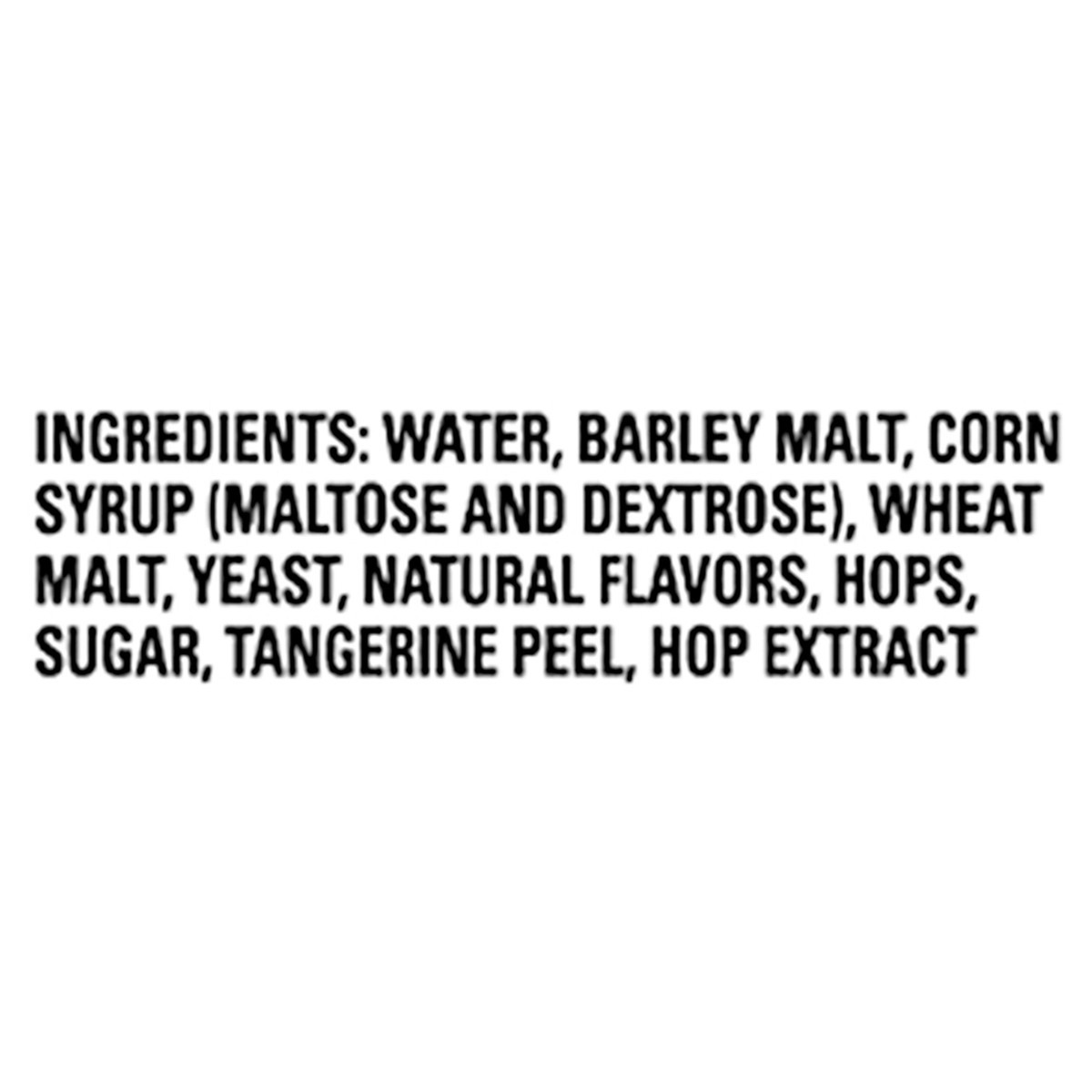 Water, Barley Malt, Corn Syrup (Maltose and Dextrose), Wheat Malt, Yeast, Natural Flavors, Hops, Sugar, Tangerine Peel, Hop Extract.