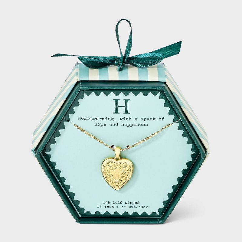 Add a touch of glam shine to your look with this 14K Gold-Dipped Heart Charm Initial Necklace from A New Day™. Designed with a twisted chain and a dainty heart charm with a letter for your first initi…