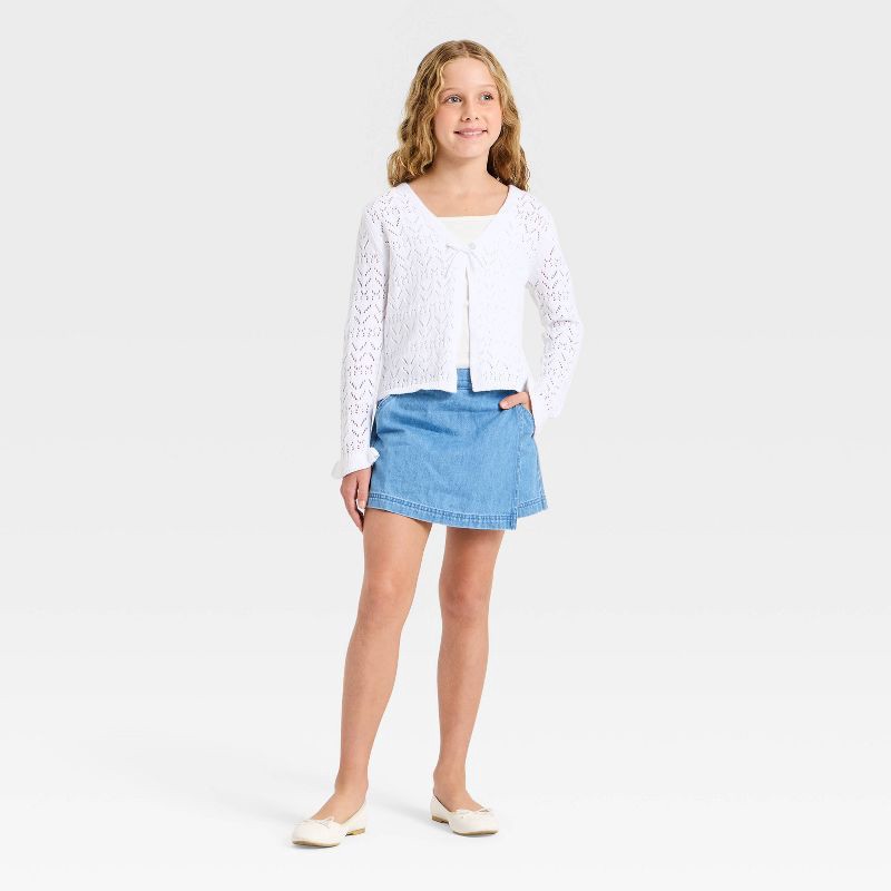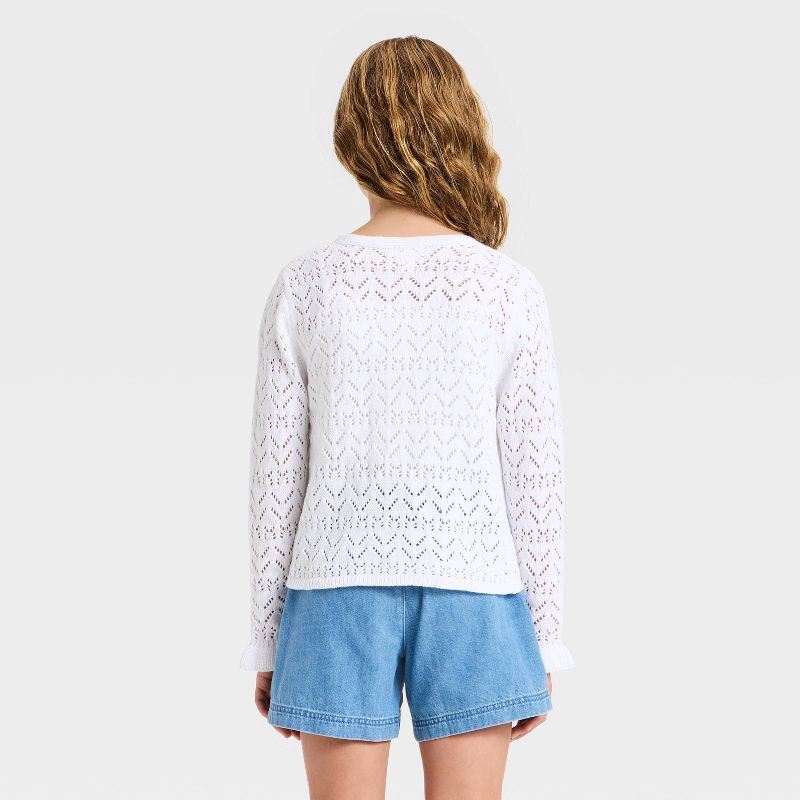 Girls' Pointelle Open Cardigan Sweater - Cat & Jack™ White XS