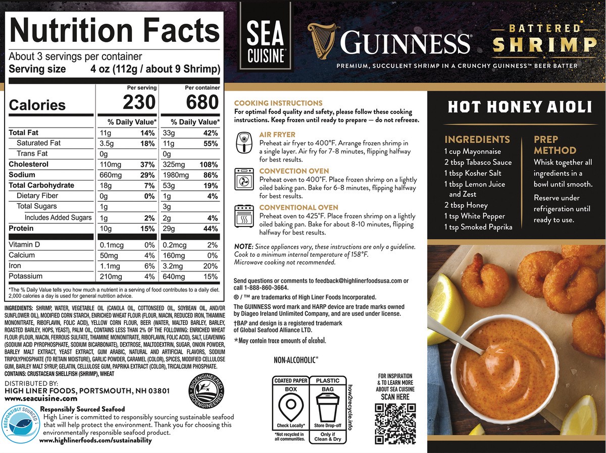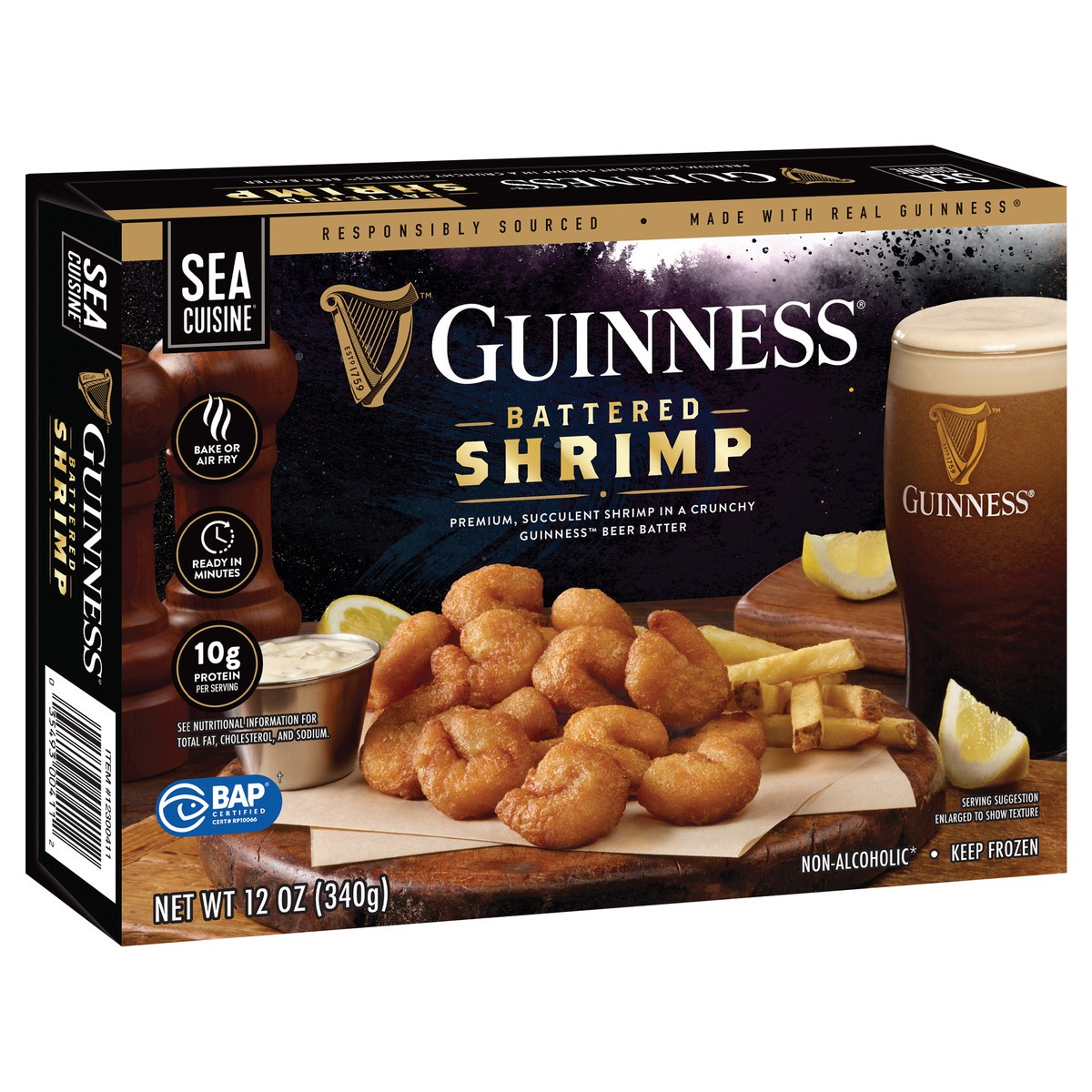 Turn any night into pub night with Sea Cuisine® Guinness® Beer Battered Shrimp. Crafted with premium, tail-off shrimp and coated in a rich, golden batter infused with the unmistakable taste of Guinnes…
