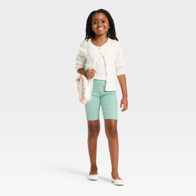 These Ribbed Bike Shorts from Cat & Jack™are made to keep up with busy kids and their always-on-the-go routines. The cotton, recycled polyester and spandex blend 2 x 2 rib fabric supports running, cli…