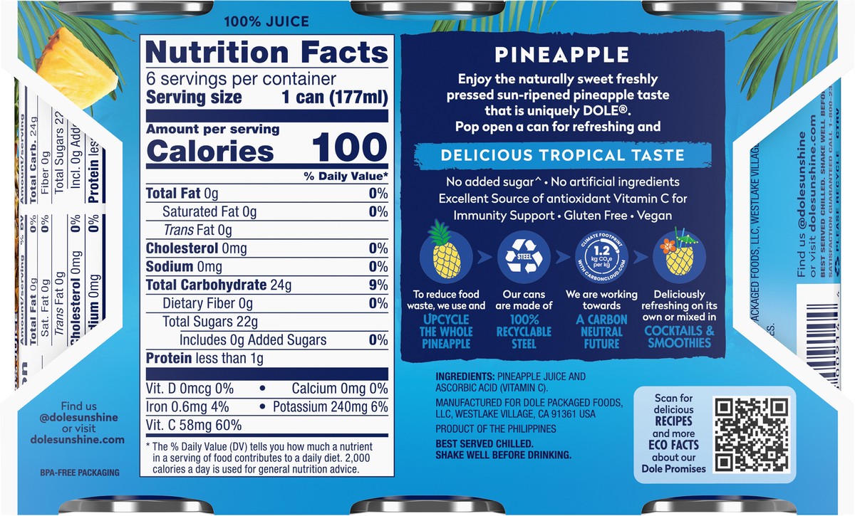 Dole Juice Pineapple - 6-6 Fl. Oz.
