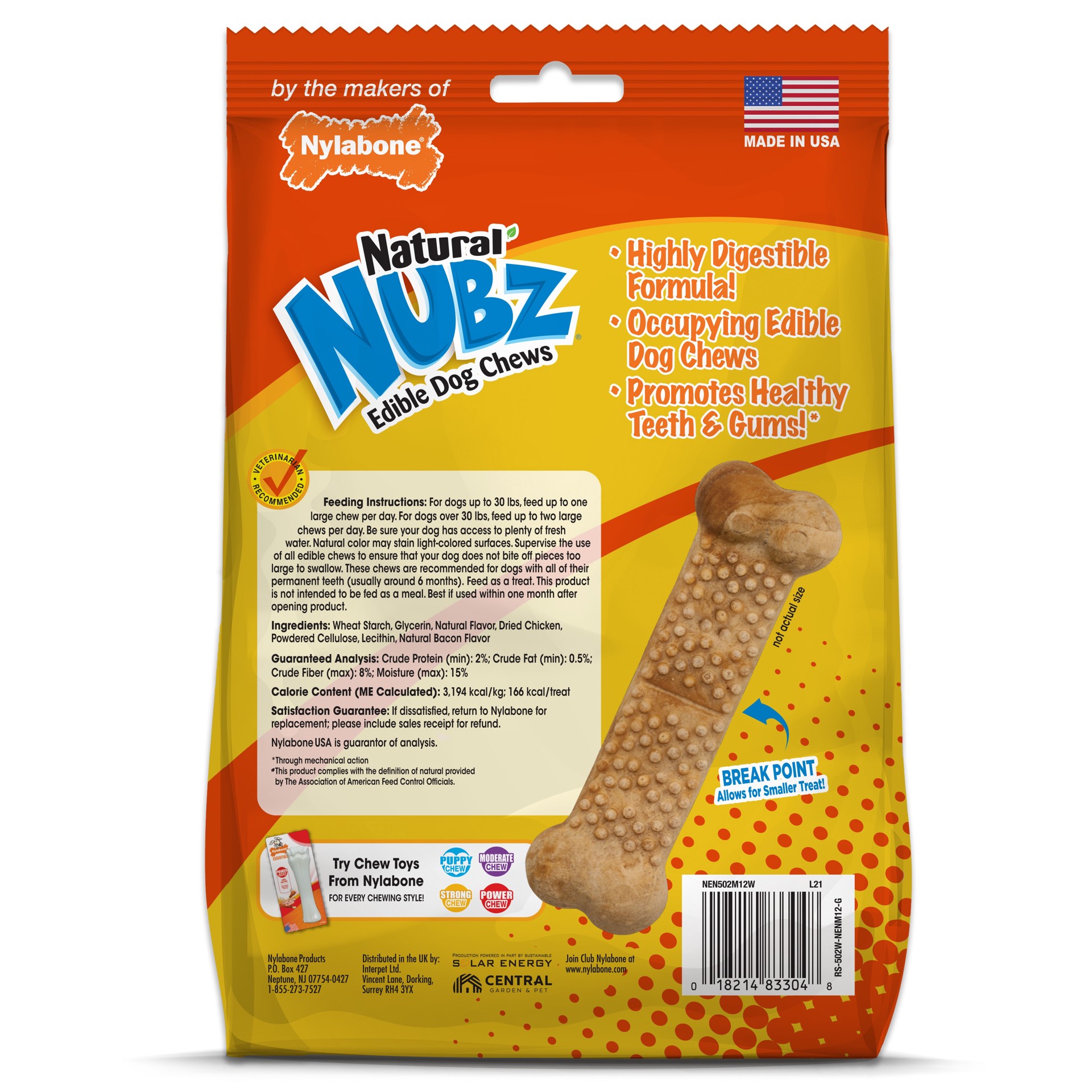 Nylabone Nubz Dental treats for Dog Chicken Flavor 12 Count