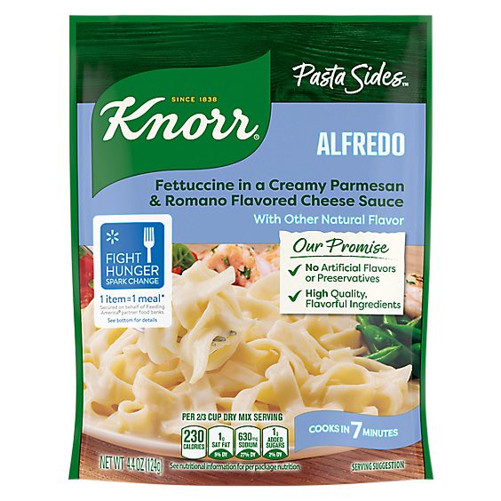 Treat your taste buds to Knorr Pasta Sides Alfredo. Our pasta side dish expertly combines fettuccine with cheesy flavors and a creamy sauce; your family is sure to love the flavor of our easy pasta di…