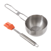 Set Includes: Sauce Pot 430 stainless steel 5x 3.5 inch, Stainless steel handle with silicone basting brush 9.4 inch. Brush is heat resistant up to 450F.Dishwasher safe. Avoid using harsh abrasive cle…