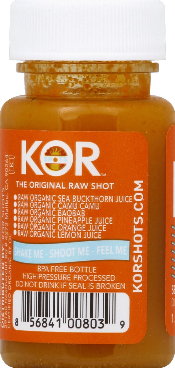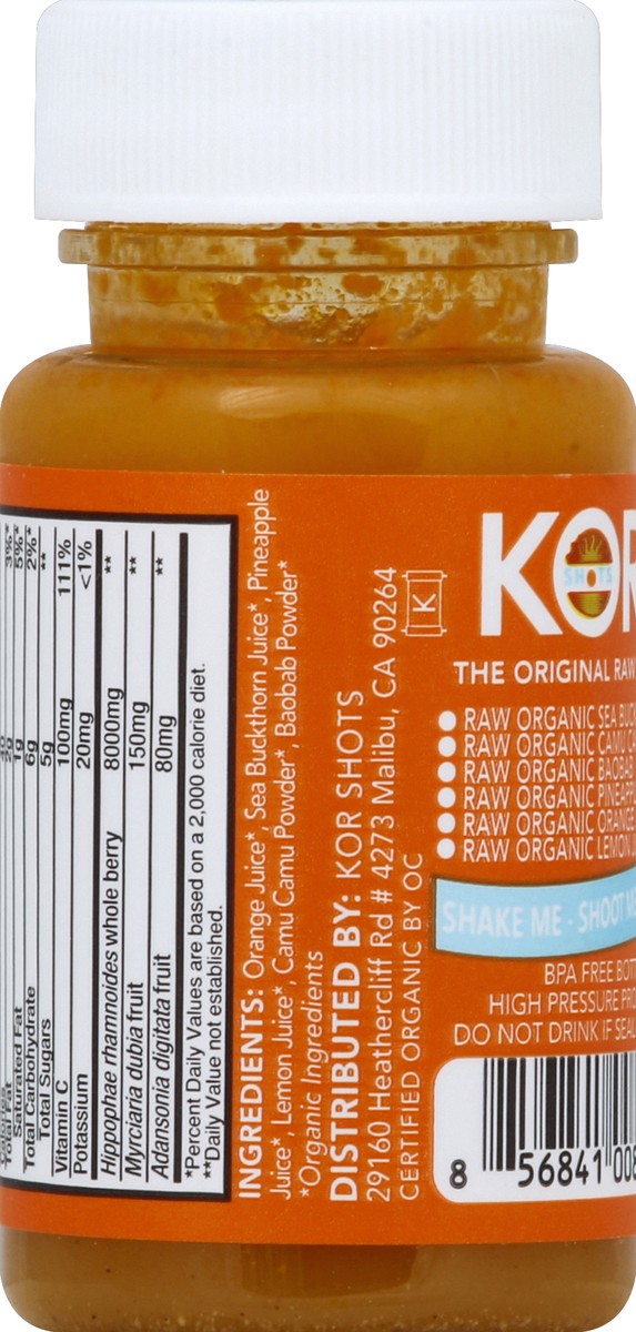 The original raw shot. USDA Organic. Certified organic by OC. Raw organic sea buckthorn juice. Raw organic camu camu, raw organic baobab. Raw organic pineapple juice. Raw organic orange juice. Raw org…