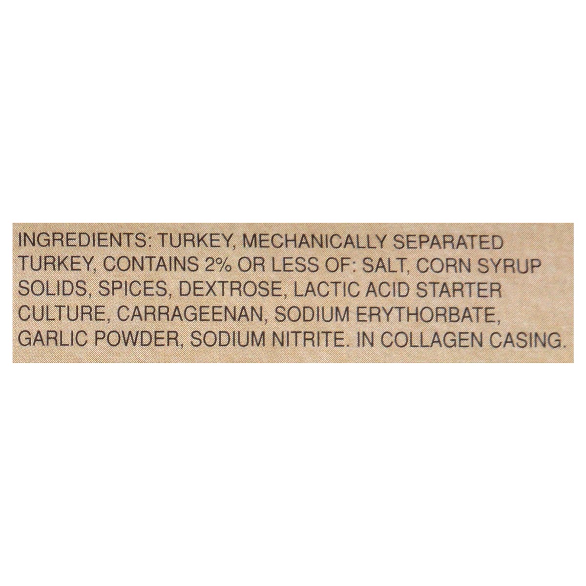 Turkey, Mechanically Separated Turkey, Contains 2% or Less of: Salt, Corn Syrup Solids, Spices, Dextrose, Lactic Acid Starter Culture, Carrageenan, Sodium Erythorbate, Garlic Powder, Sodium Nitrite, i…