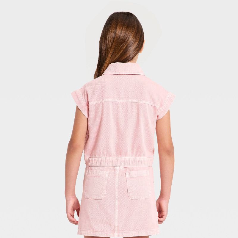 Girls' Sleeveless Denim Top - Cat & Jack™ Peach Pink XS