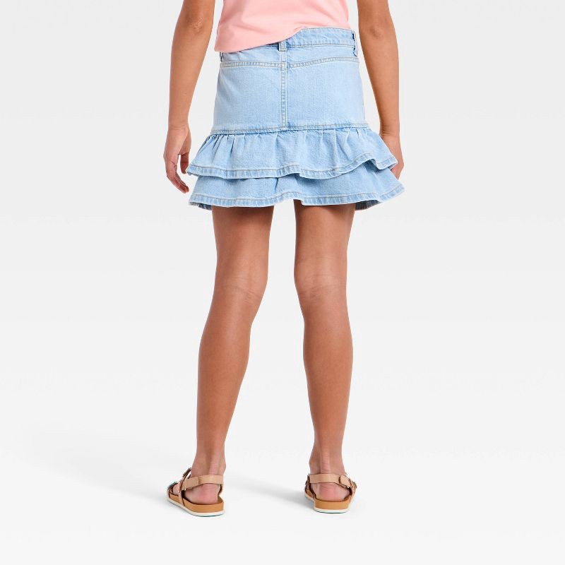 Girls' Tiered Ruffle Denim Skirt - Cat & Jack™ Light Wash XL