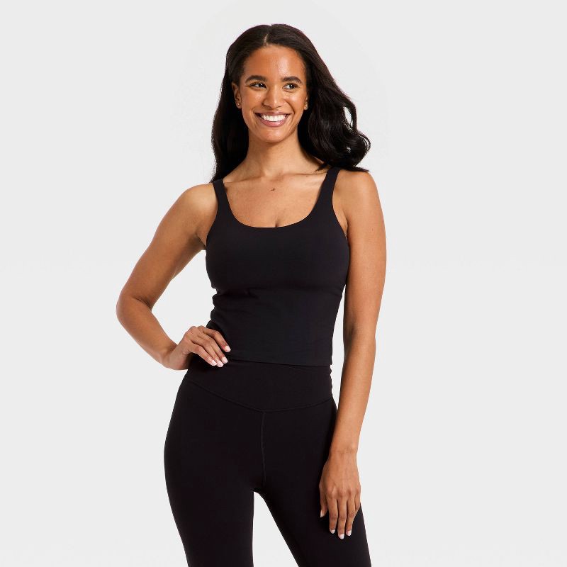 Women's Everyday Soft Square Neck Twist Back Support Tank Top - All In Motion™ Black XL