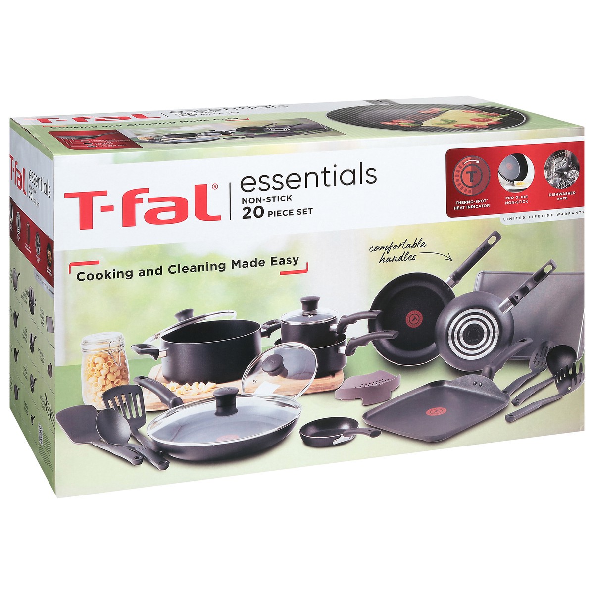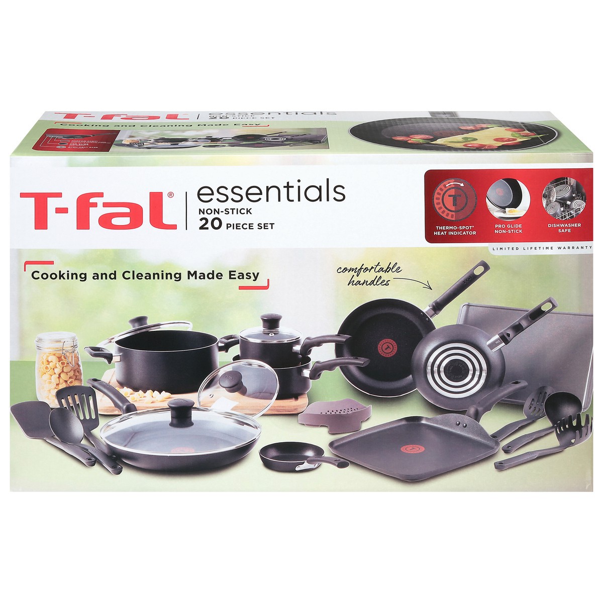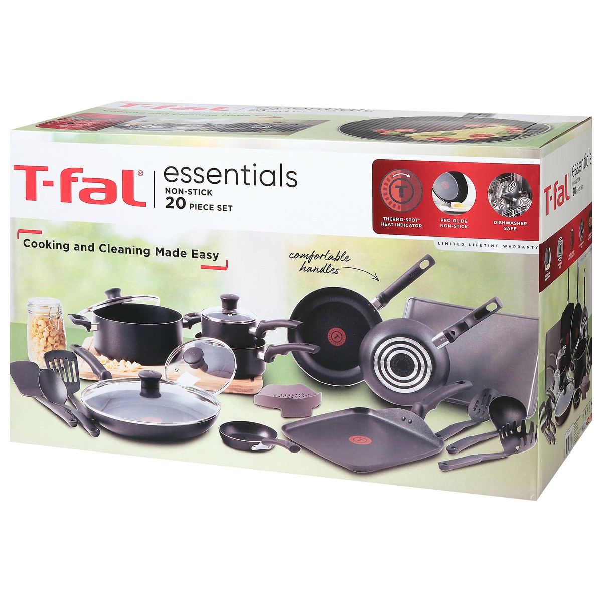 T-Fal Essentials 20 Piece Non-Stick Cookware Set - Black