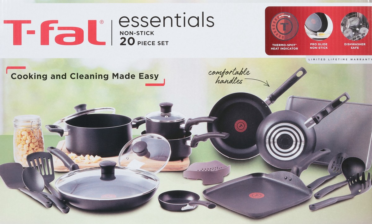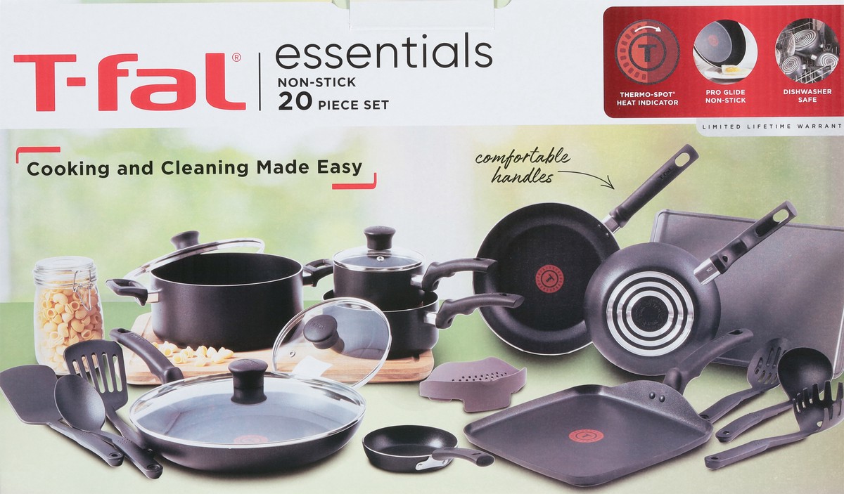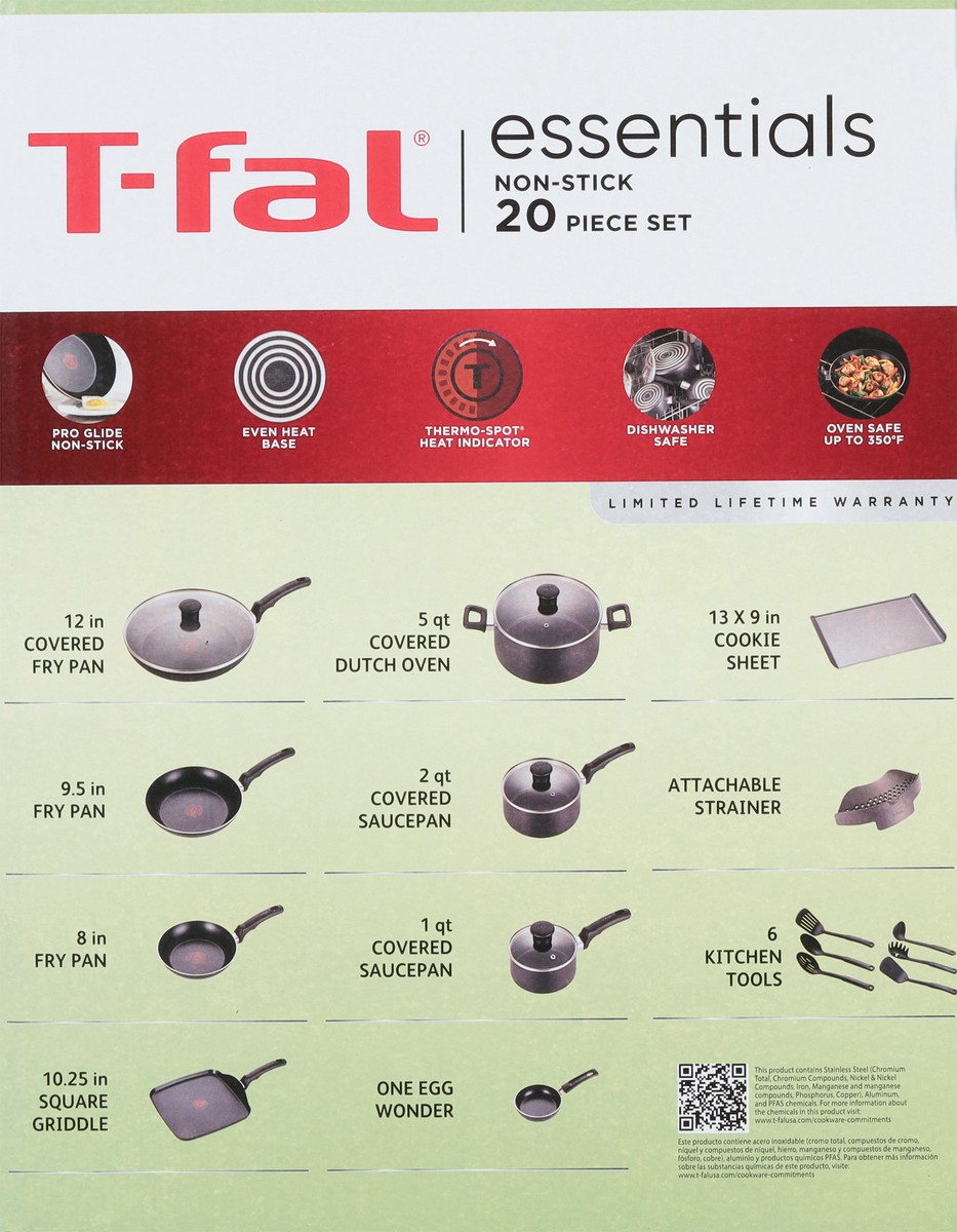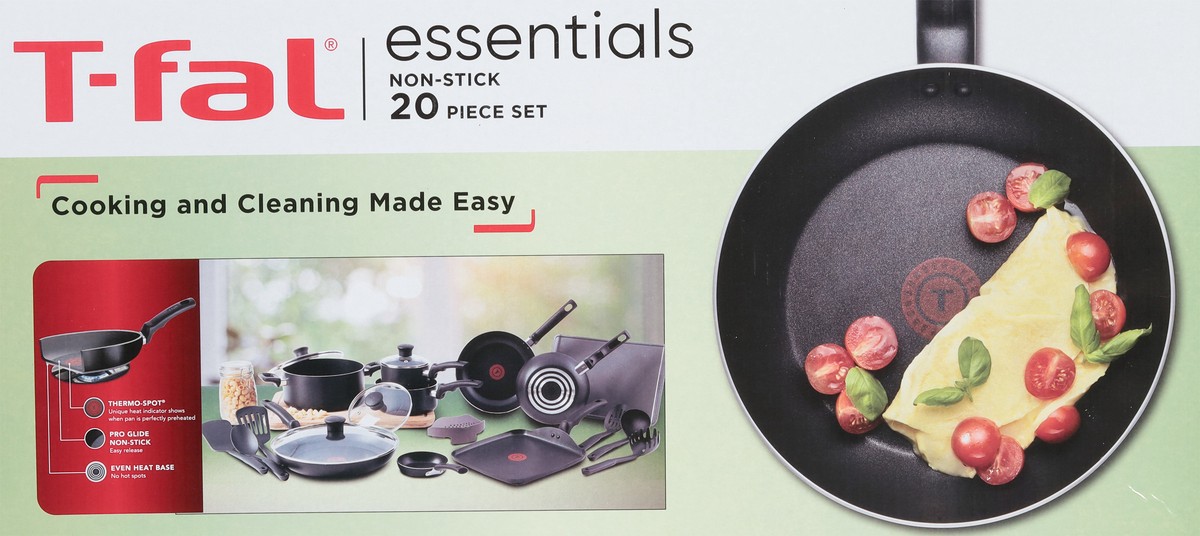 T-Fal Essentials 20 Piece Non-Stick Cookware Set - Black