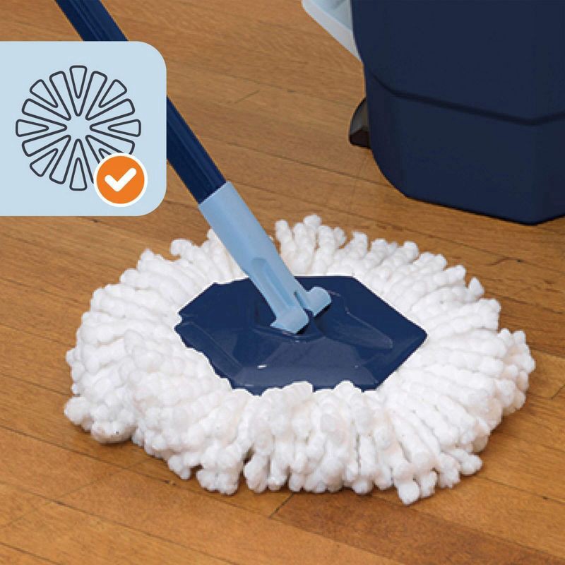 The Casabella Clean Water Spin Mop features two buckets that work together, allowing for separation of clean and dirty water, making it easier to fill with clean water in any sink and discard dirty wh…