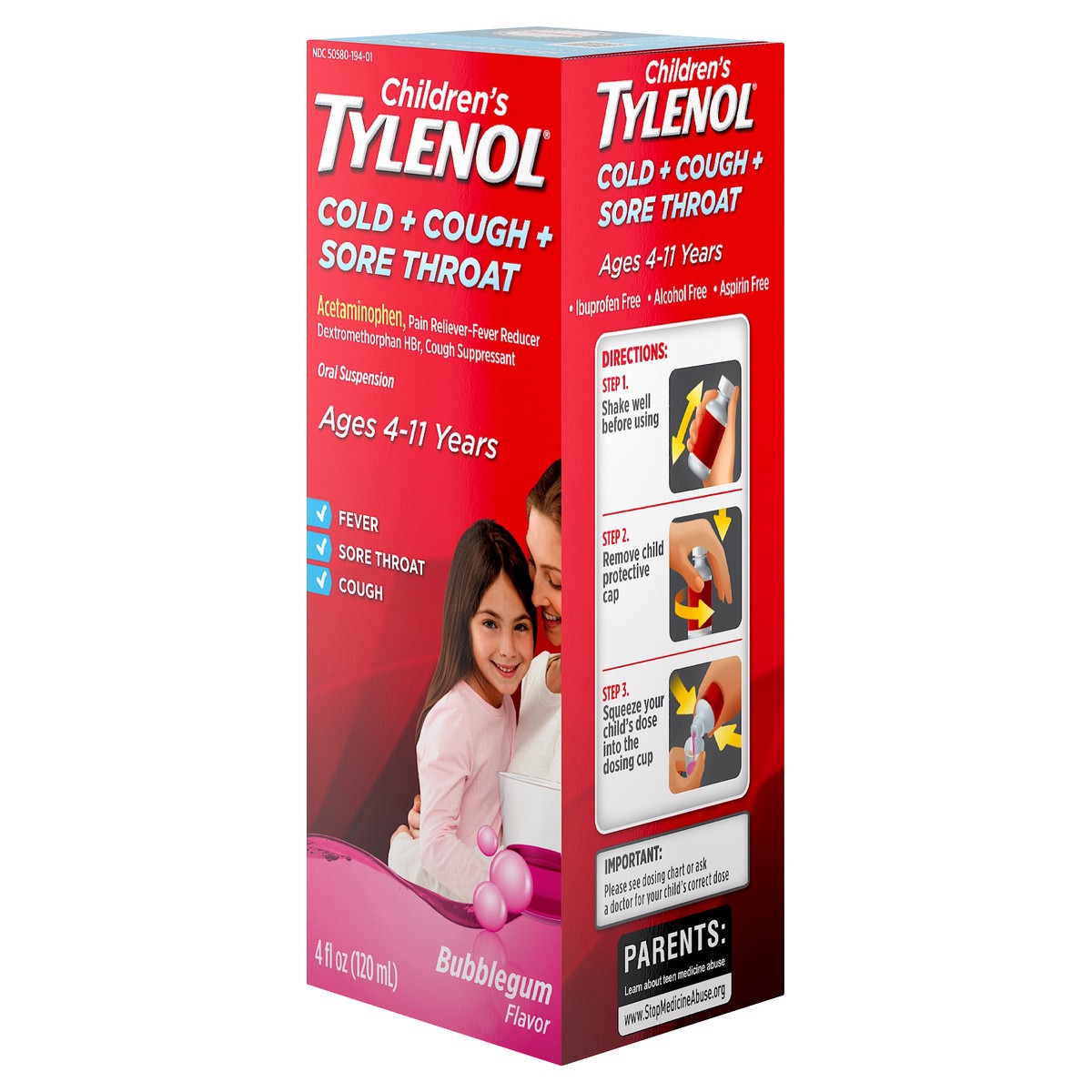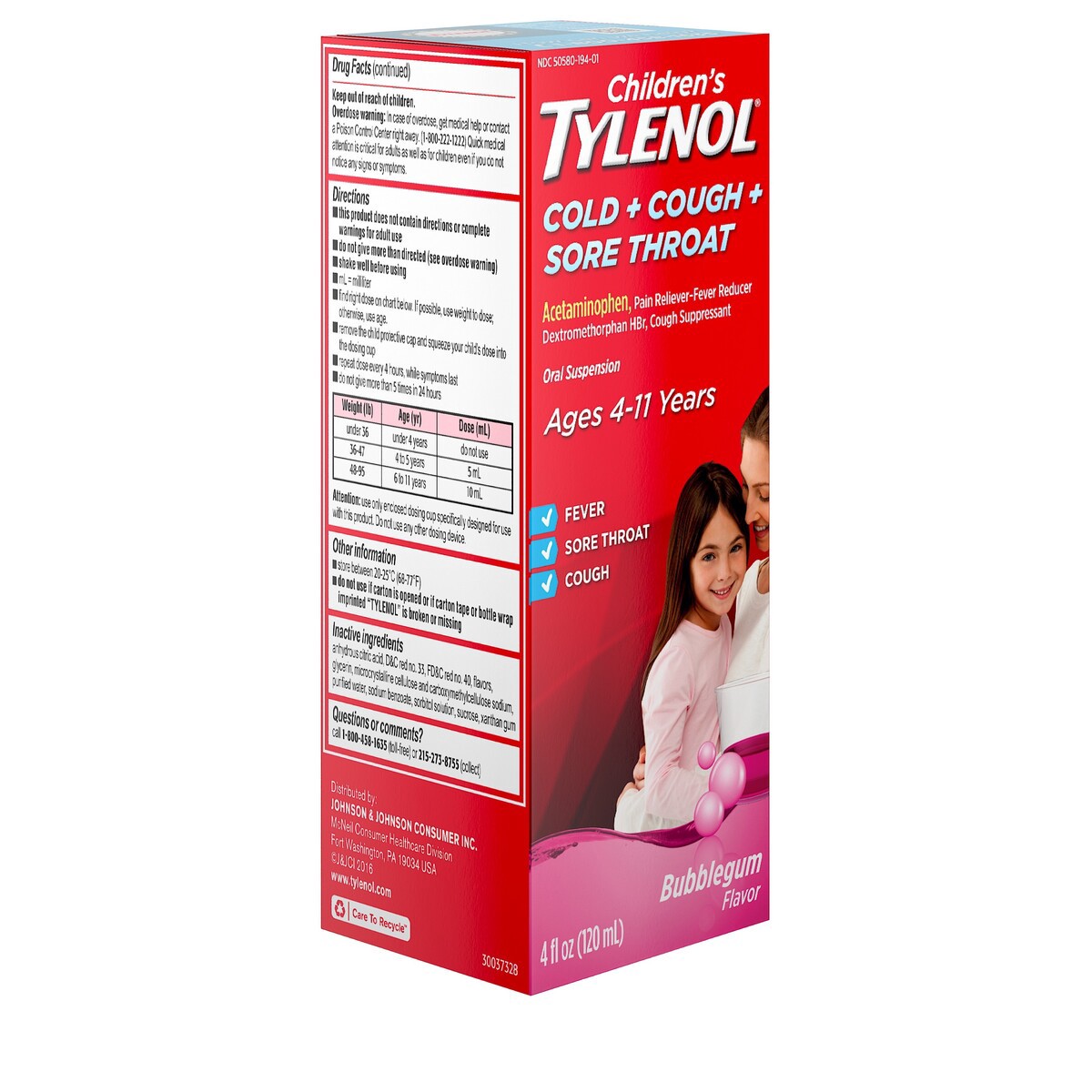 Children's Tylenol Cold Cough And Sore Throat Bubblegum Flavored Medicine - 4 Fl. Oz.