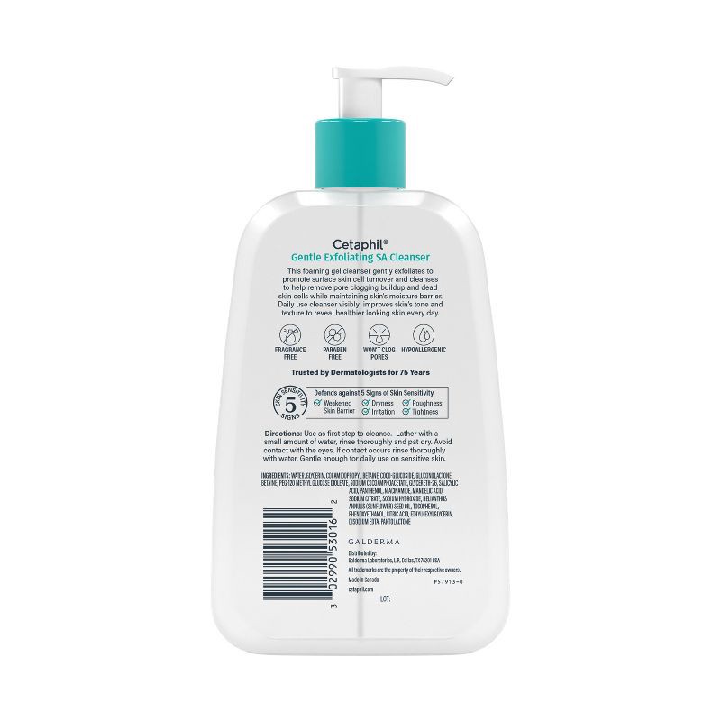 - CETAPHIL GENTLE EXFOLIATING SA CLEANSER: Gently cleanses and exfoliates to promote surface skin cell renewal for smooth, even and radiant-looking skin after just 1 use