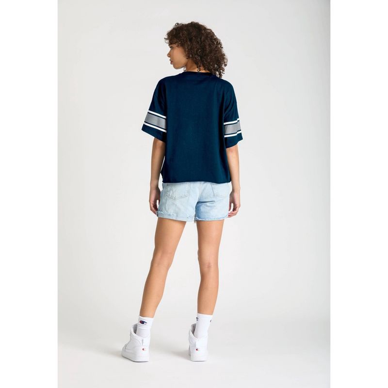 Show your team spirit with authentic Champion style in this enzyme-washed Short Sleeve Crew Tee. Made from 100% cotton in team dark colors, it features a bold front mascot graphic topped with shimmeri…