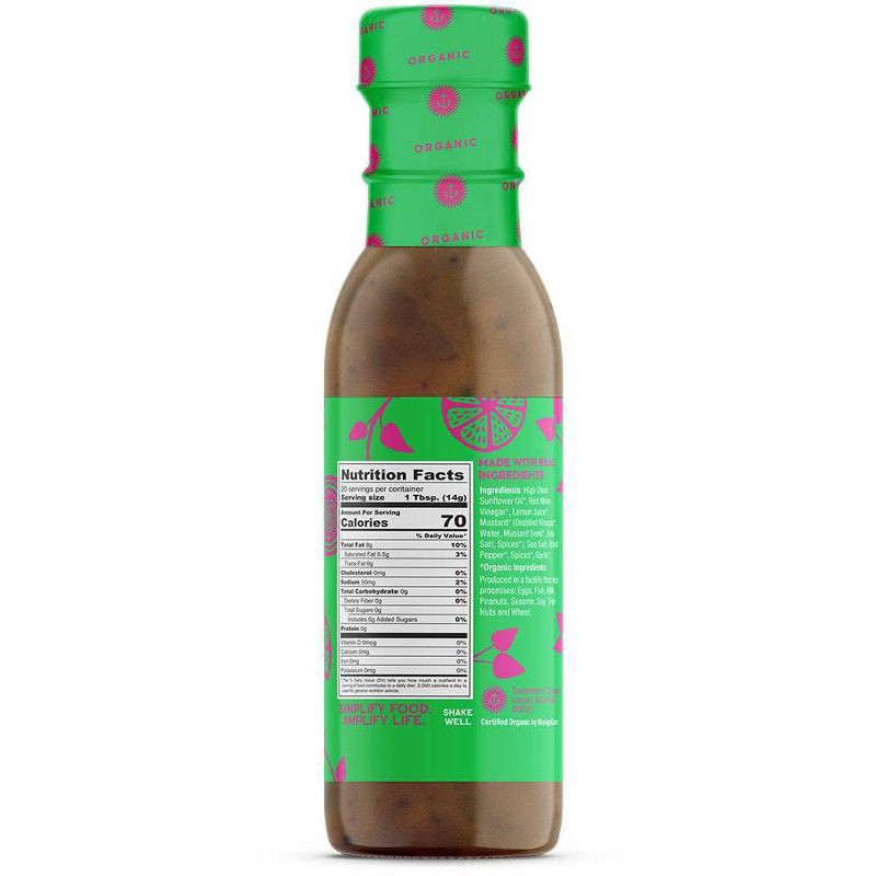 *High Oleic Sunflower Oil, *Red Wine Vinegar, *Extra Virgin Olive Oil, *Lemon Juice, *Mustard (*Vinegar, Water, *Mustard Seed, Sea Salt, *Spices), Sea Salt, *Black Pepper, *Spices, *Garlic Powder, *Or…