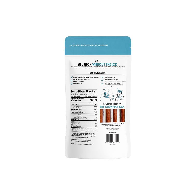 - Convenience Meets Quality: Our commitment to quality shines through with 100% grass-fed and finished beef - Whether you're hitting the trails, at the office, or simply need a quick boost of energy between meals, Chomps offers the perfect blend of convenience and quality