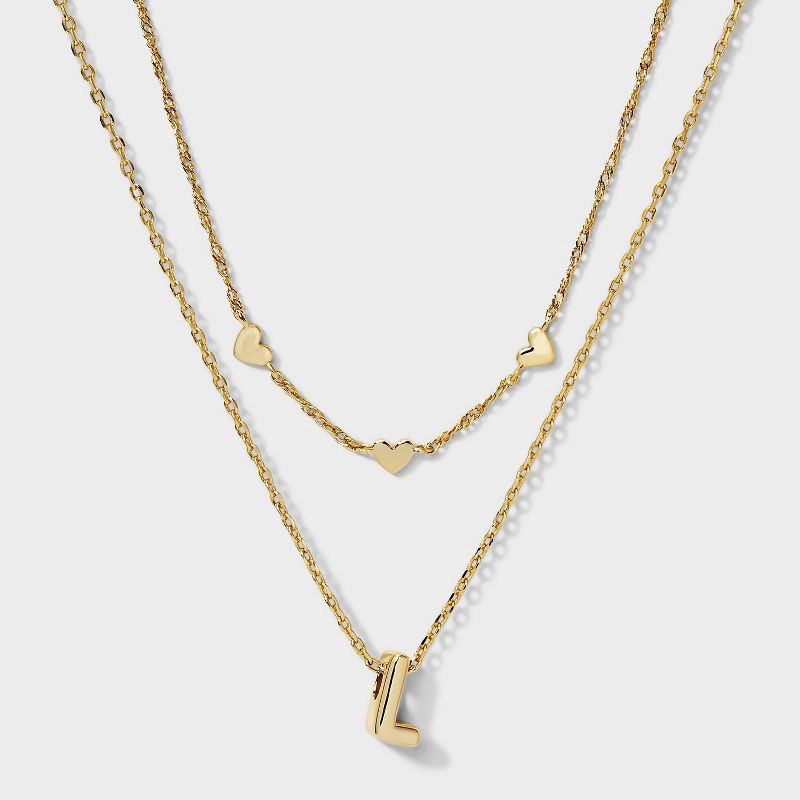 Bring a personal touch to your jewelry collection with this 14-Karat Gold-Dipped Hearts "L" Initial Multi-Strand Necklace from A New Day™. This multi-strand necklace features a singapore chain with th…