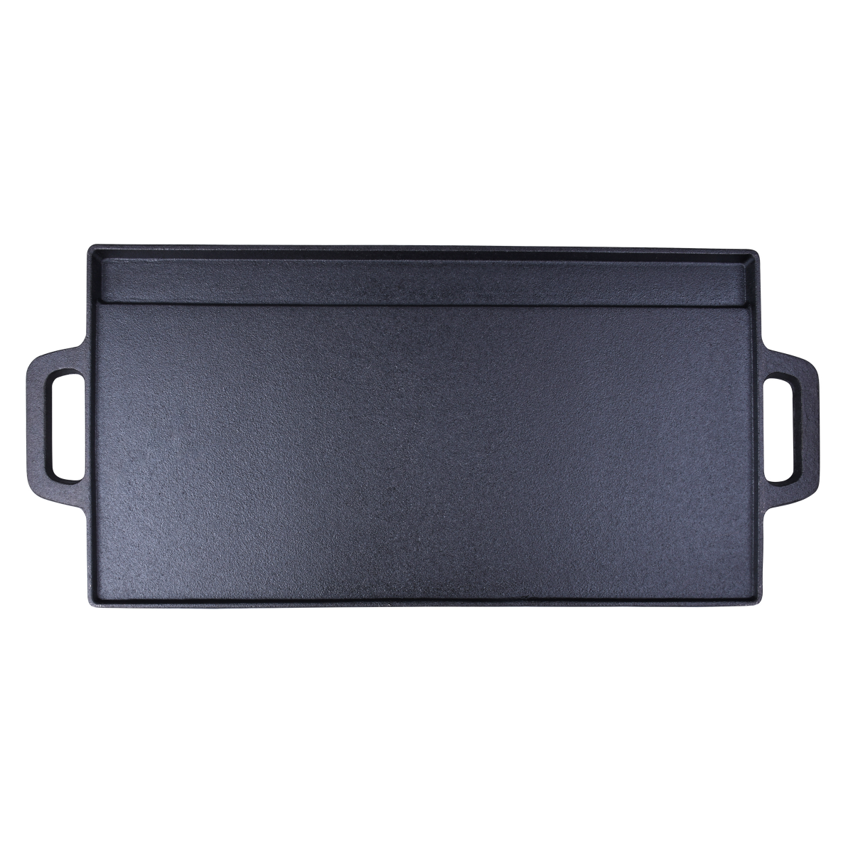 Cast iron grill Ribber, size: 20 in x 9 in.Season before use to develop a durable non-stick coating: WASH Brush all over (inside, outside and handle) with a high smoke point oil (such as canola oil). …
