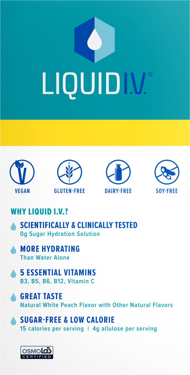 Liquid I.V. Hydration Multiplier Sugar-Free White Peach Electrolyte Drink Mix 15 - 0.45 oz Stick Packs