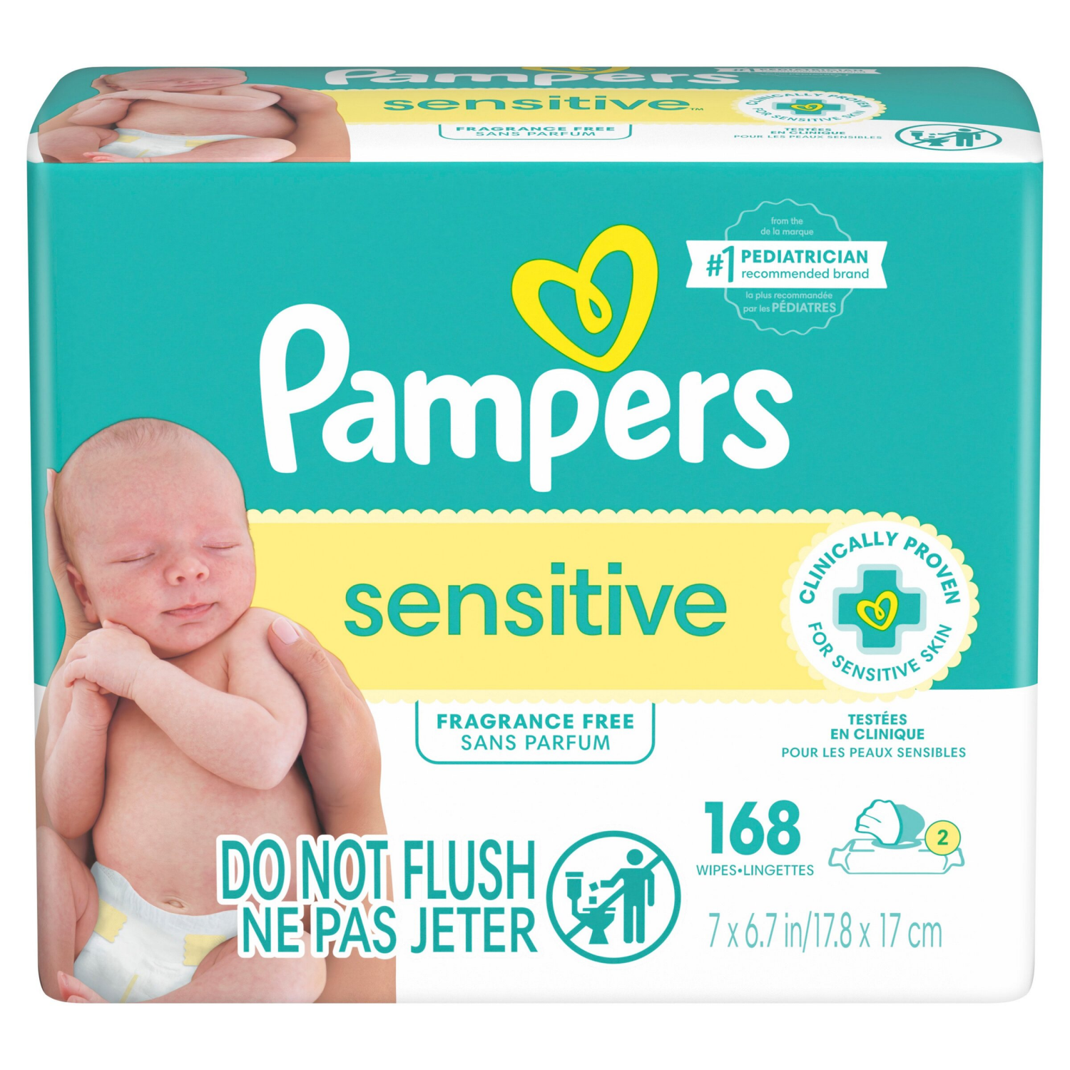 Baby Wipes Pampers Sensitive, Clinically Proven, Fragrance Free, Water Based, Hypoallergenic Baby Wipes, 168 Baby Wipes Total (2X Flip-Top Packs)