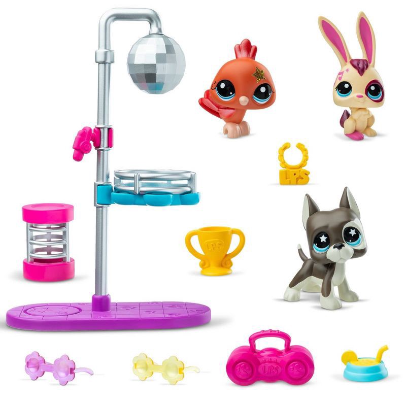 Get ready to groove with the Littlest Pet Shop Disco Nights Play Pack! This festive set features 3 bobblin' pets who are all set to boogie under the bright lights of the disco ball. Whether you're spi…