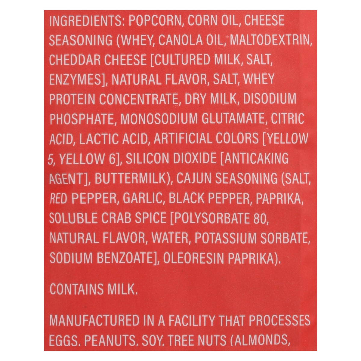 Popcorn, Corn Oil, Cheese Seasoning (Whey, Canola Oil, Maltodextrin, Cheddar Cheese [Cultured Milk, Salt, Enzymes], Natural Flavor, Salt, Whey Protein Concentrate, Dry Milk, Disodium Phosphate, Monoso…
