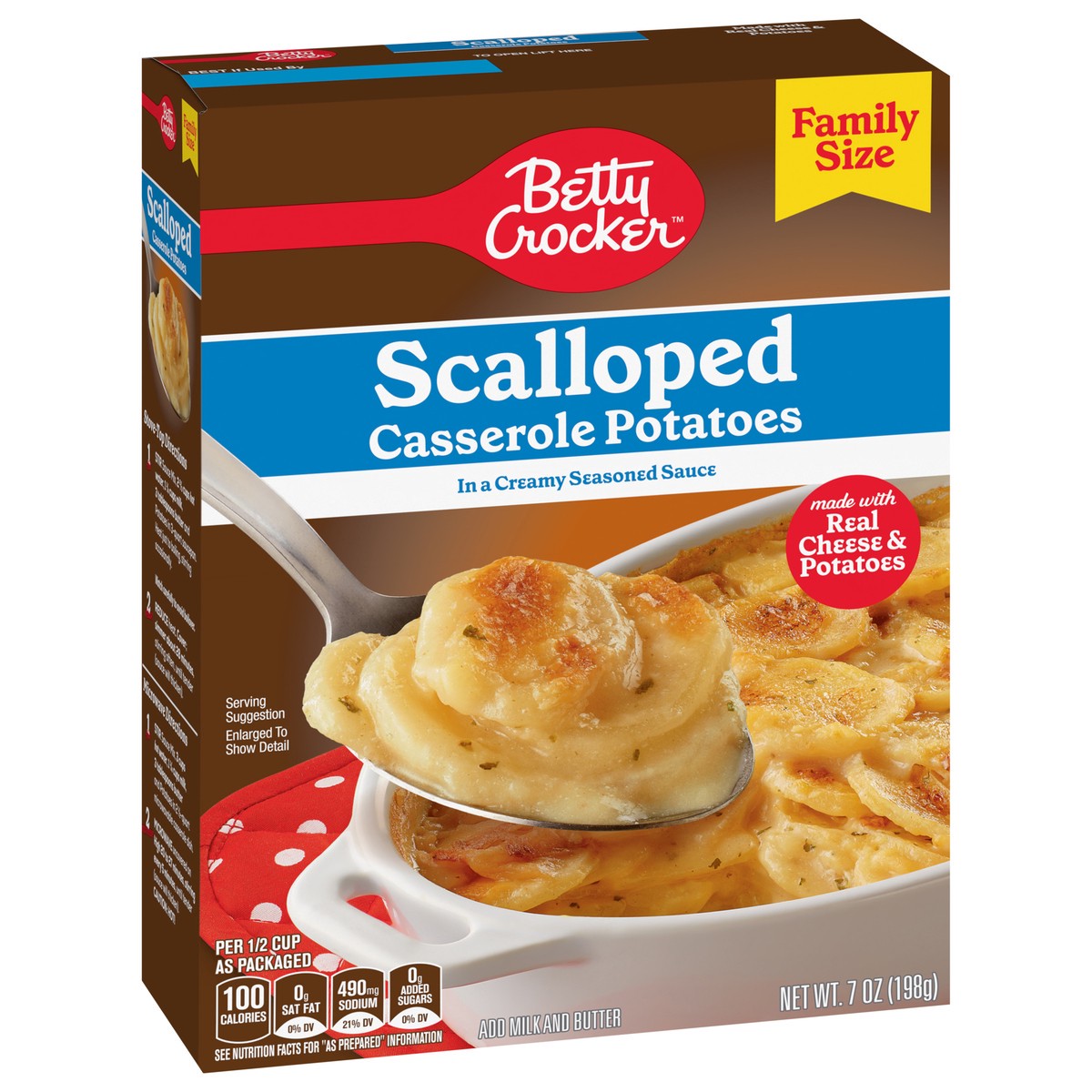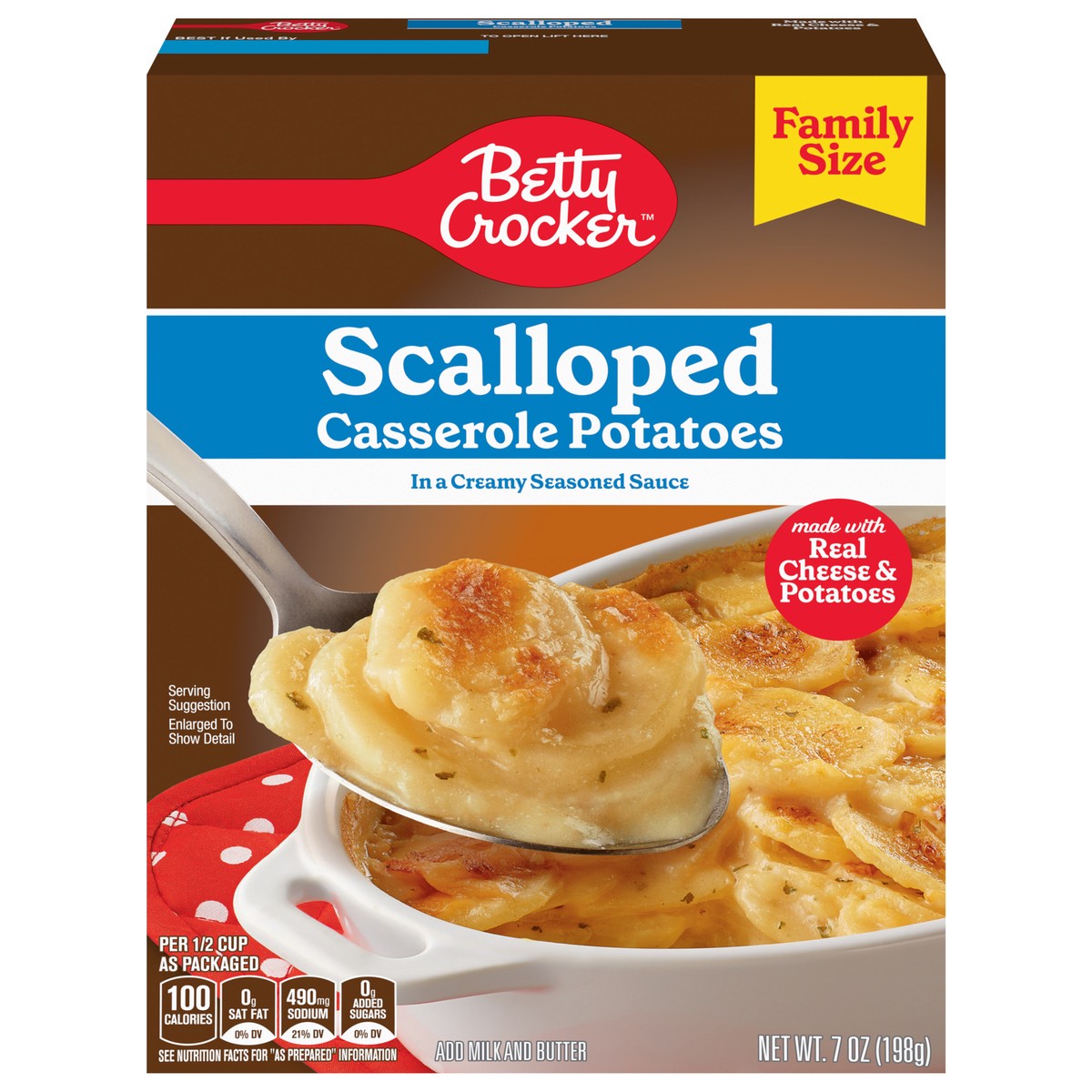 Betty Crocker Scalloped Casserole Potatoes, Made With Real Cheese, Family Size, 7 oz BoxA favorite for generations, Betty Crocker makes it easy to bring this classic combination of real cheese and sli…