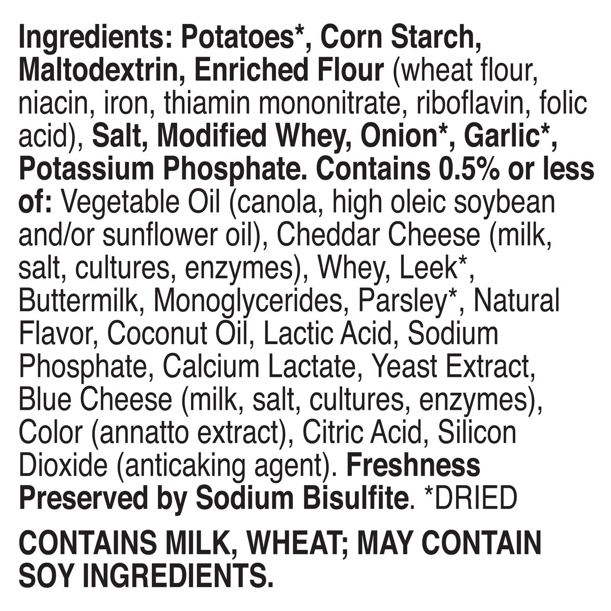 Potatoes* Enriched Flour (Wheat Flour Niacin Iron Thiamin Mononitrate Riboflavin Folic Acid) Maltodextrin Corn Starch Sea Salt Potassium Phosphate. Contains Less than 0.5% of Monosodium Glutamate Part…