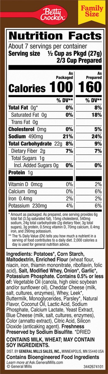 Betty Crocker Scalloped Casserole Potatoes, Made With Real Cheese, Family Size, 7 oz Box