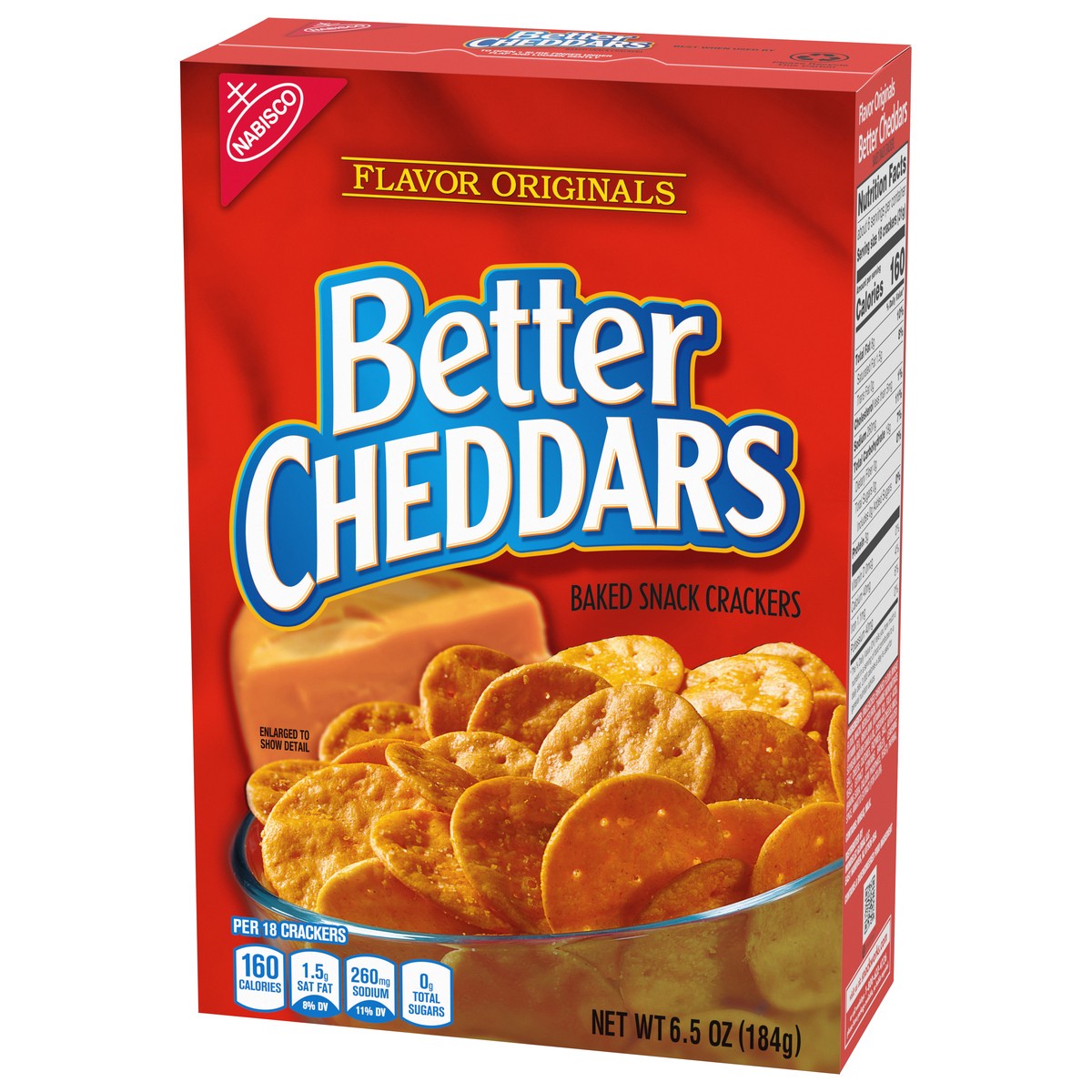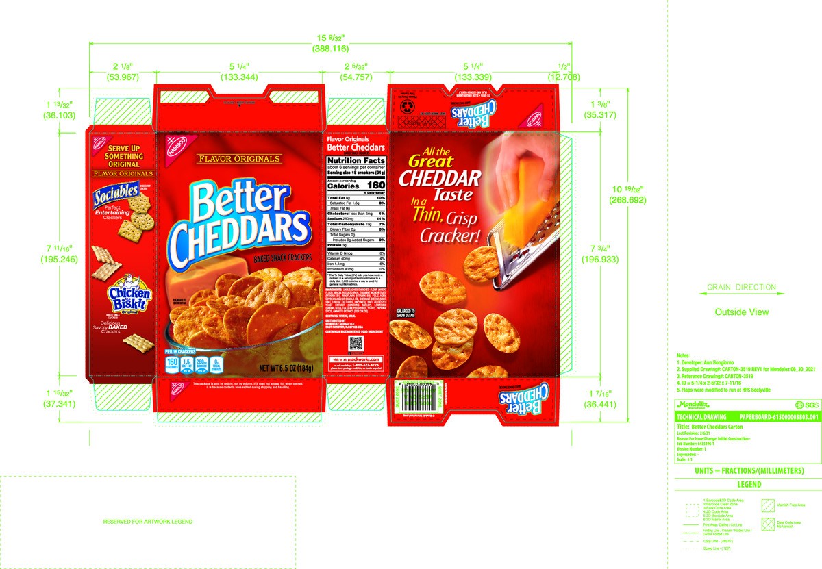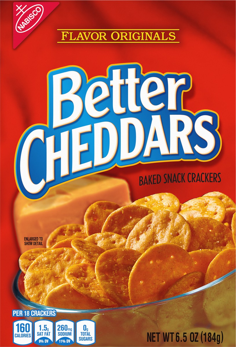 Flavor Originals Better Cheddars Cheddar Cheese Crackers are oven baked with a delightfully crispy, thin texture and an irresistible crunch. Pack these cheddar crackers in lunchboxes for a crunchy com…
