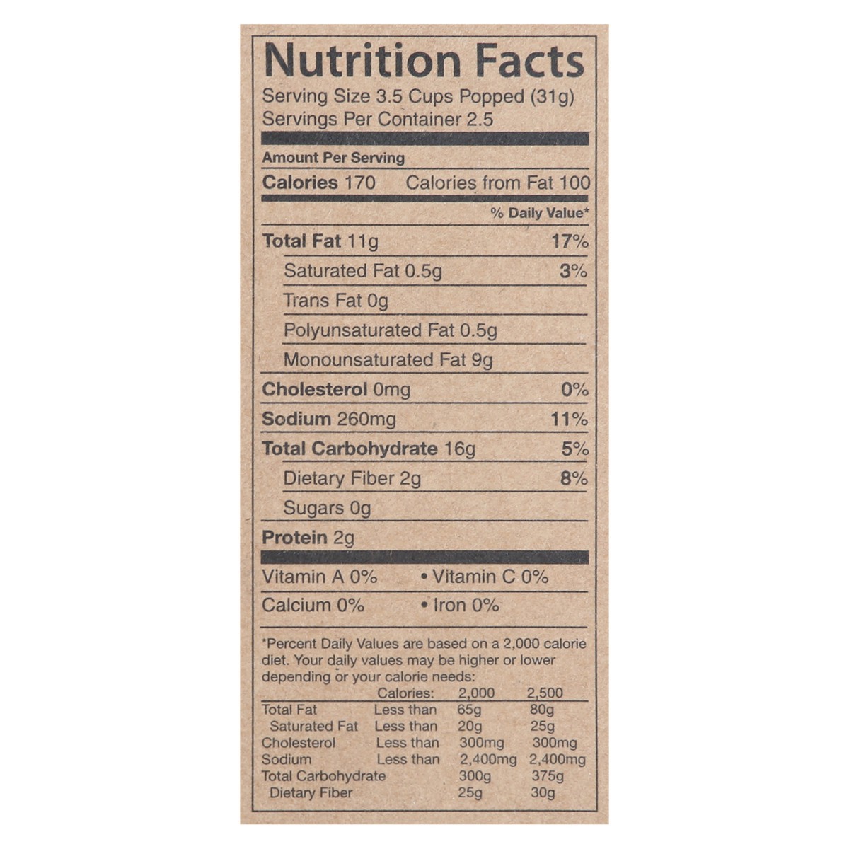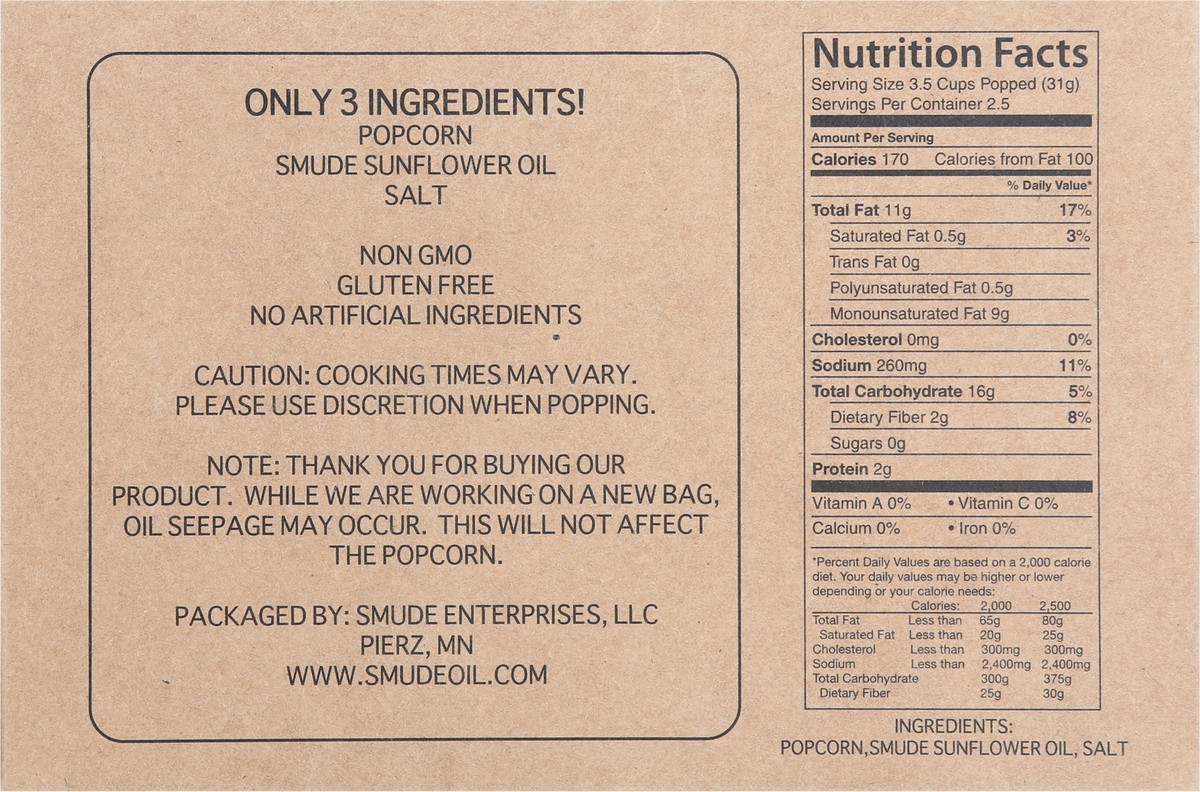Popcorn, Smude Sunflower Oil, Salt.
