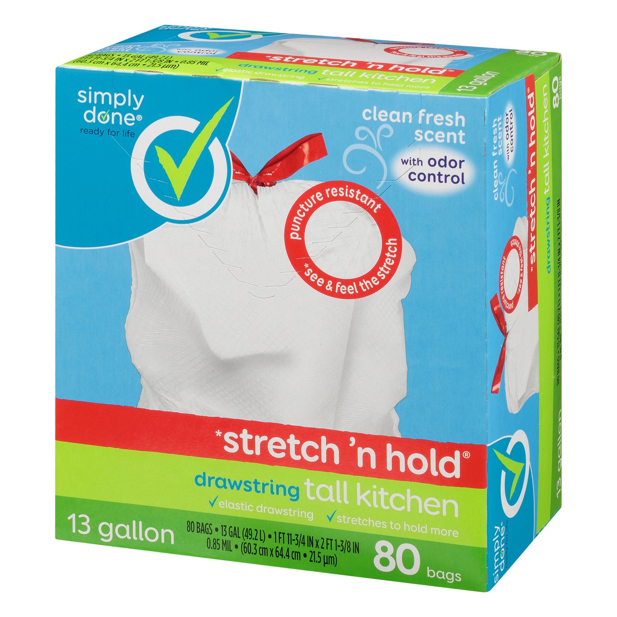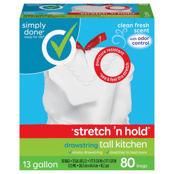 Simply Done Drawstring Clean Fresh Scent Tall Kitchen Bags 13 Gallon 80 ct