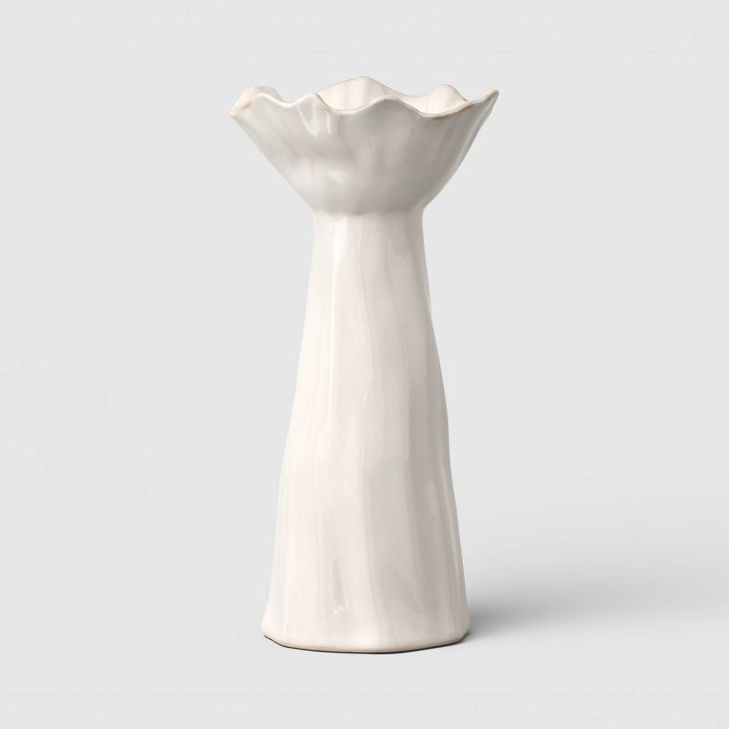 Add a touch of elegance to your tabletop with the Tall Sculpted Foliage Taper Candle Holder from Threshold™. Crafted from ceramic, this off-white candle holder features a charming foliage design that …
