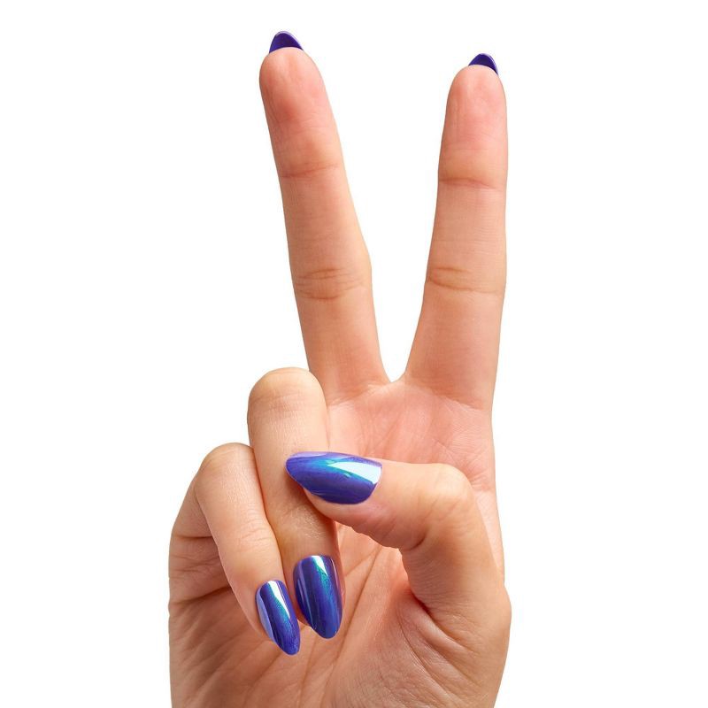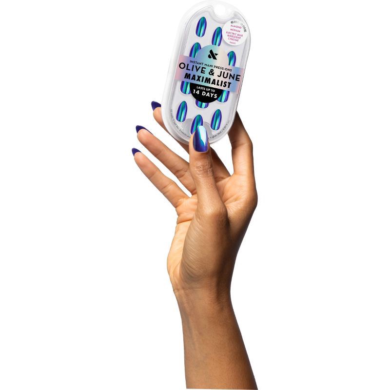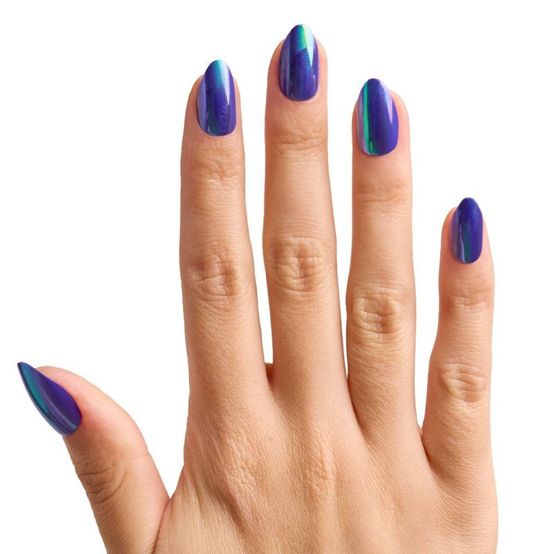 Olive & June Press-On Fake Nails - M Almond - Electric Blue Iridescent Chrome - 42ct