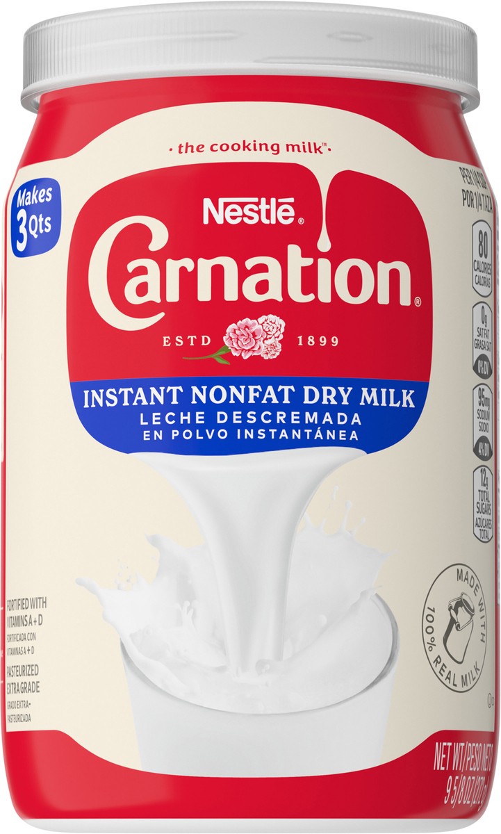- PERFECT FOR BAKING: Our instant non-fat dry milk is the perfect addition for your baking needs. Add Carnation to any of your baking recipes. This non-fat milk ensures your baking results are always high quality and delicious