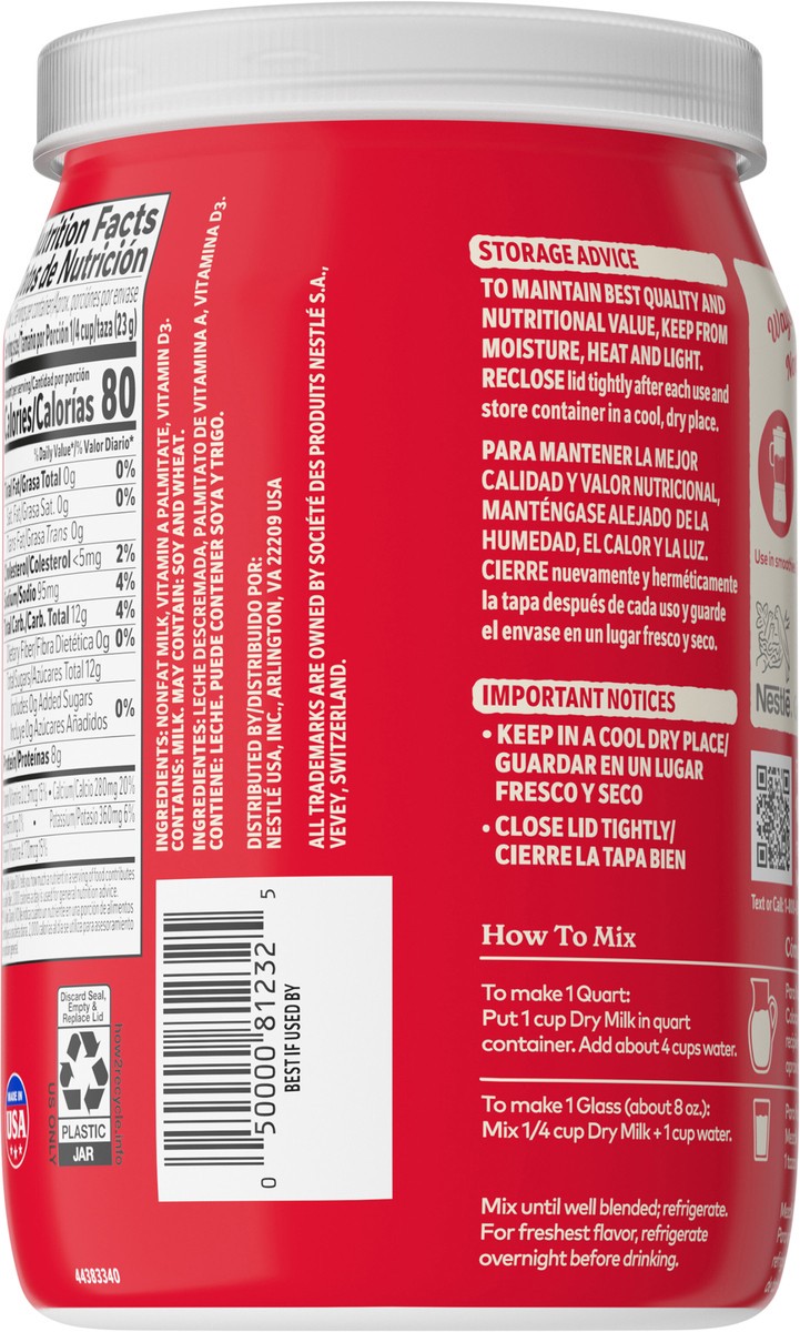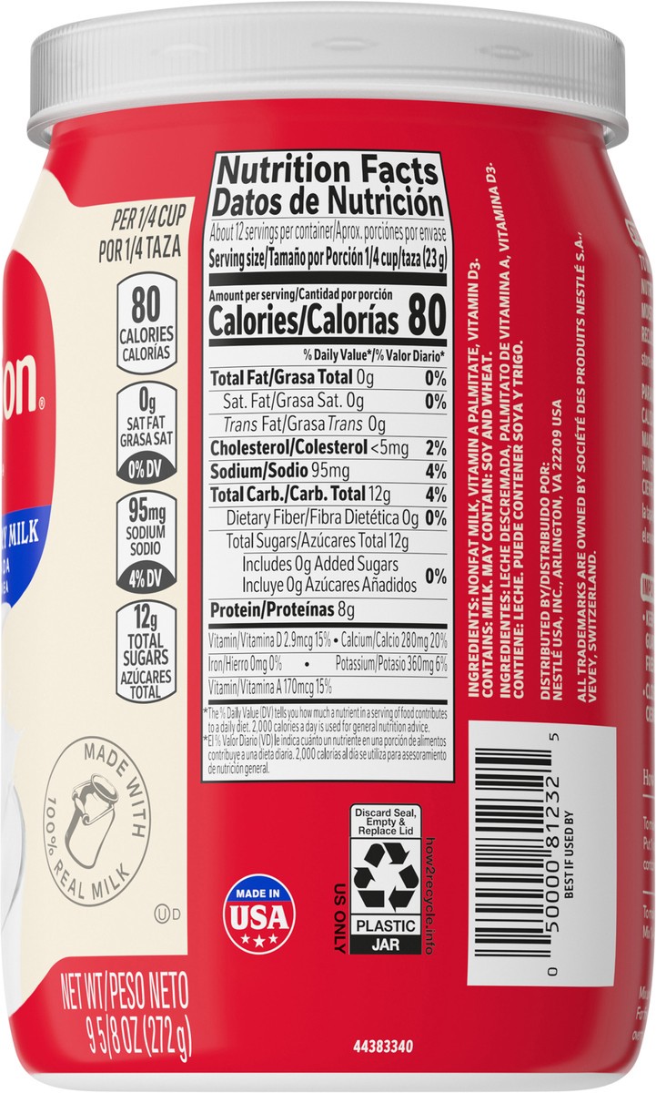 - RICH AND CREAMY: Nestlé Carnation Instant Non-Fat Dry Milk is fortified with vitamin A & D