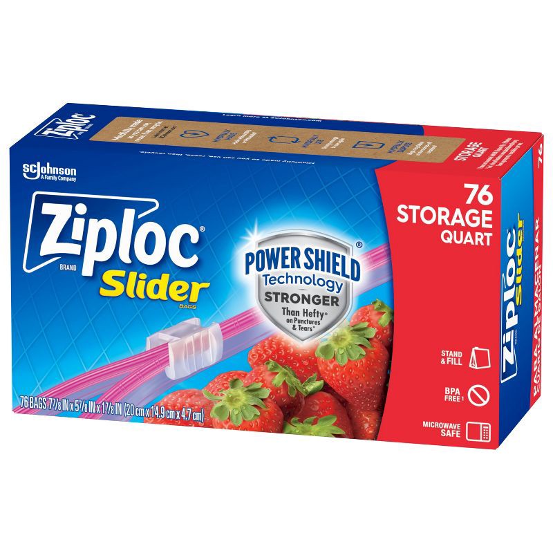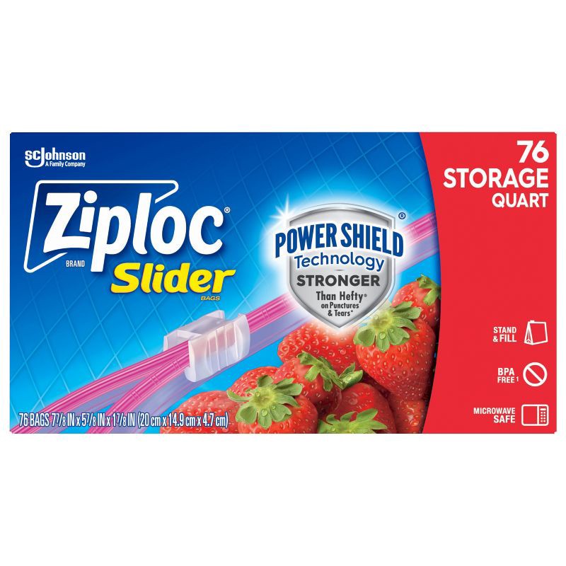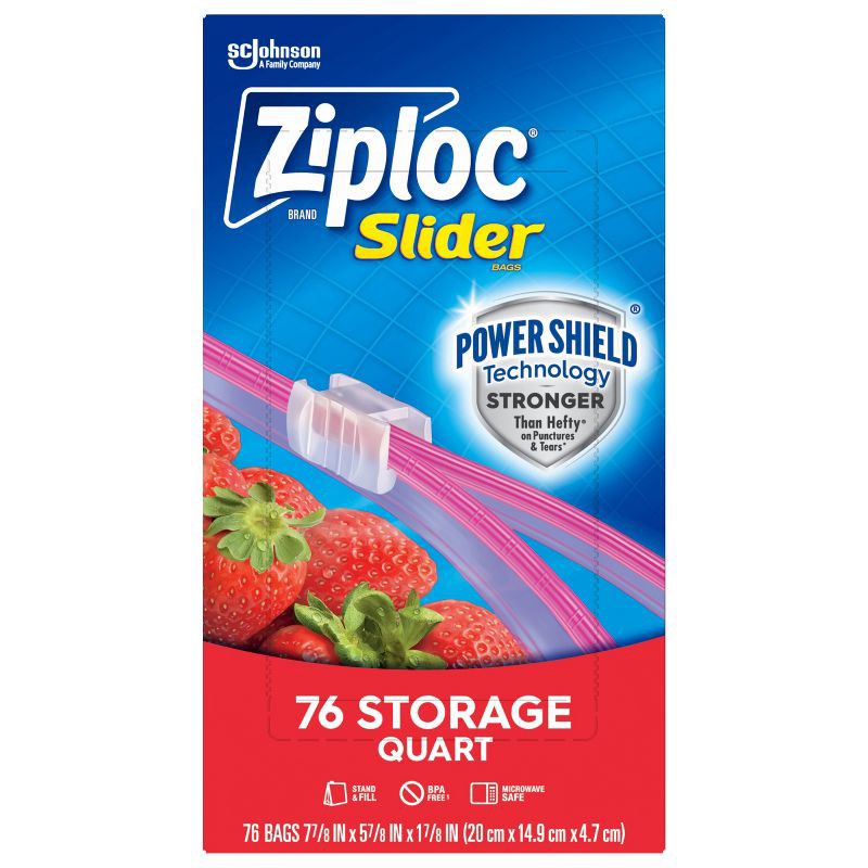 Ziploc Slider Quart Food Storage Bags for Meal Prep - 76ct: BPA-Free, Slider Seal, Protects Against Spills