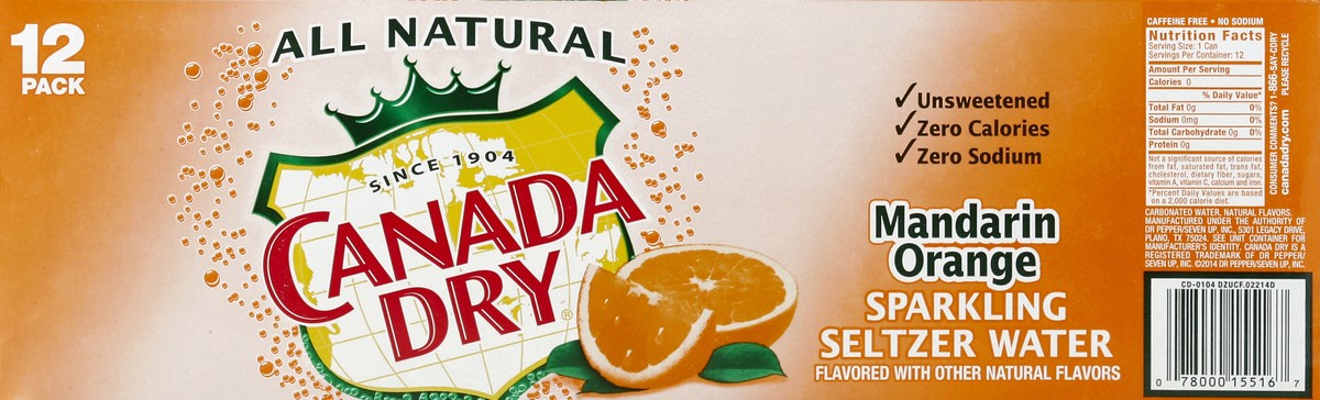 Canada Dry Mandarin Orange Sparkling Seltzer Water In Can - 12-12 Fl. Oz.