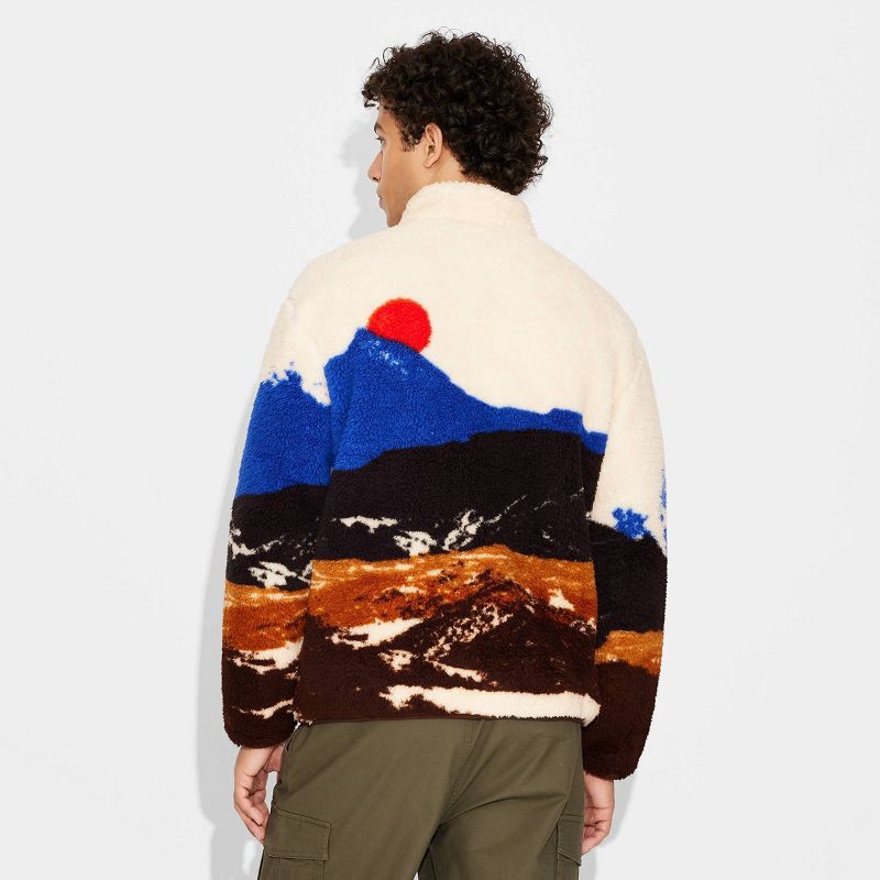 Printed high-pile fleece jacket made of midweight recycled polyester. Features a stand-up collar neckline, full-length zippered front and long sleeves. Side pockets complete the look with functional f…