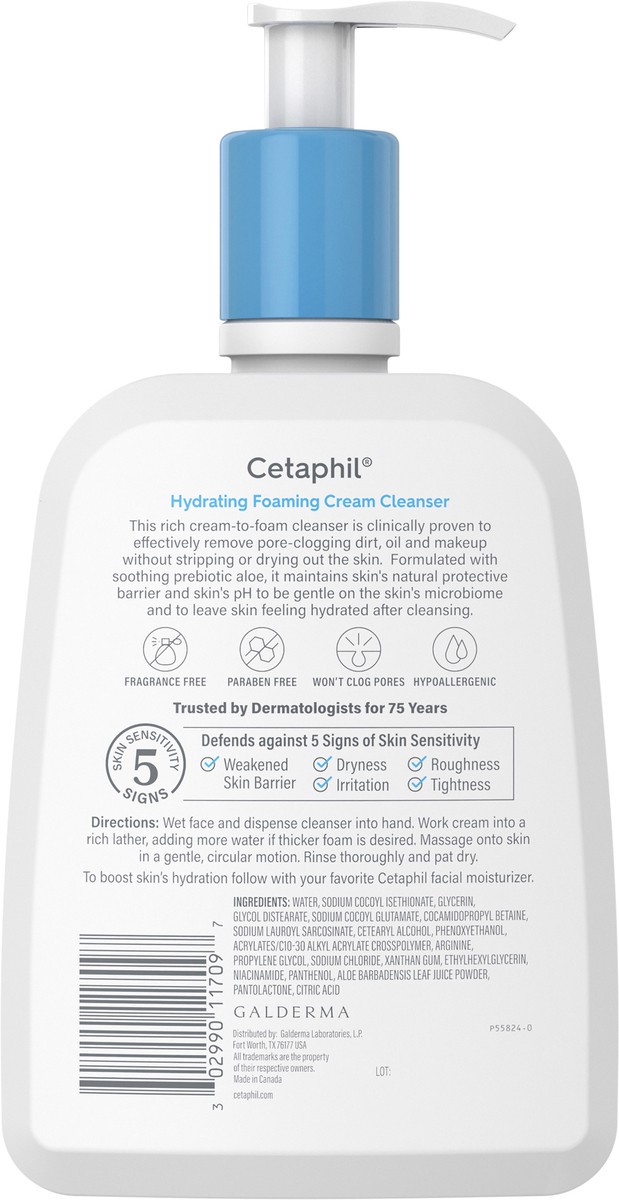- CETAPHIL HYDRATING FOAMING CREAM CLEANSER: Gentle yet powerful foaming facial cleanser, clinically proven to effectively remove dirt, oil and makeup without drying the skin barrier