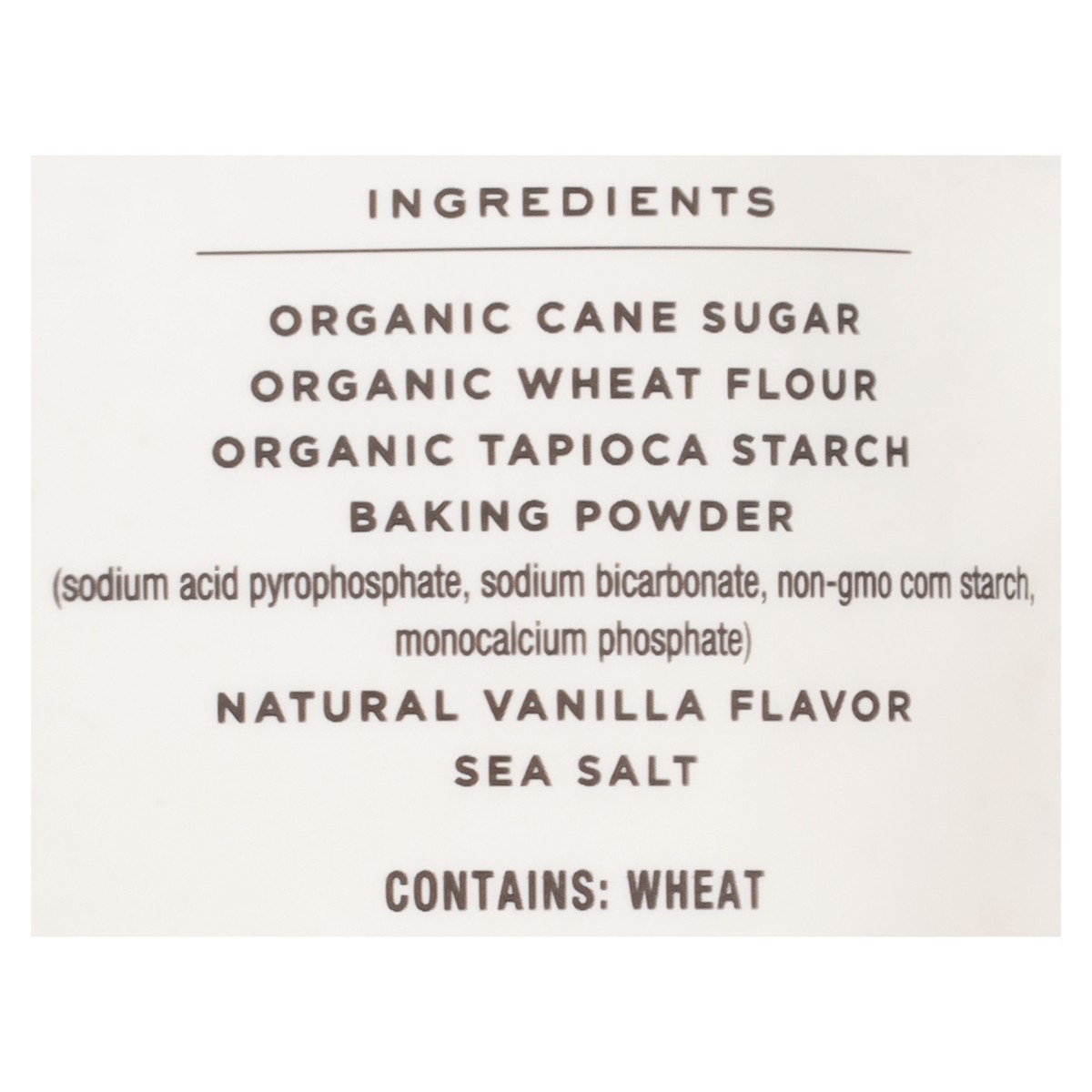 Organic Cane Sugar, Organic Wheat Flour, Organic Wheat Starch, Baking Powder (Sodium Acid Pyrophosphate, Sodium Bicarbonate, Non-GMO Corn Starch, Monocalcium Phosphate), Natural Vanilla Flavor, Sea Sa…
