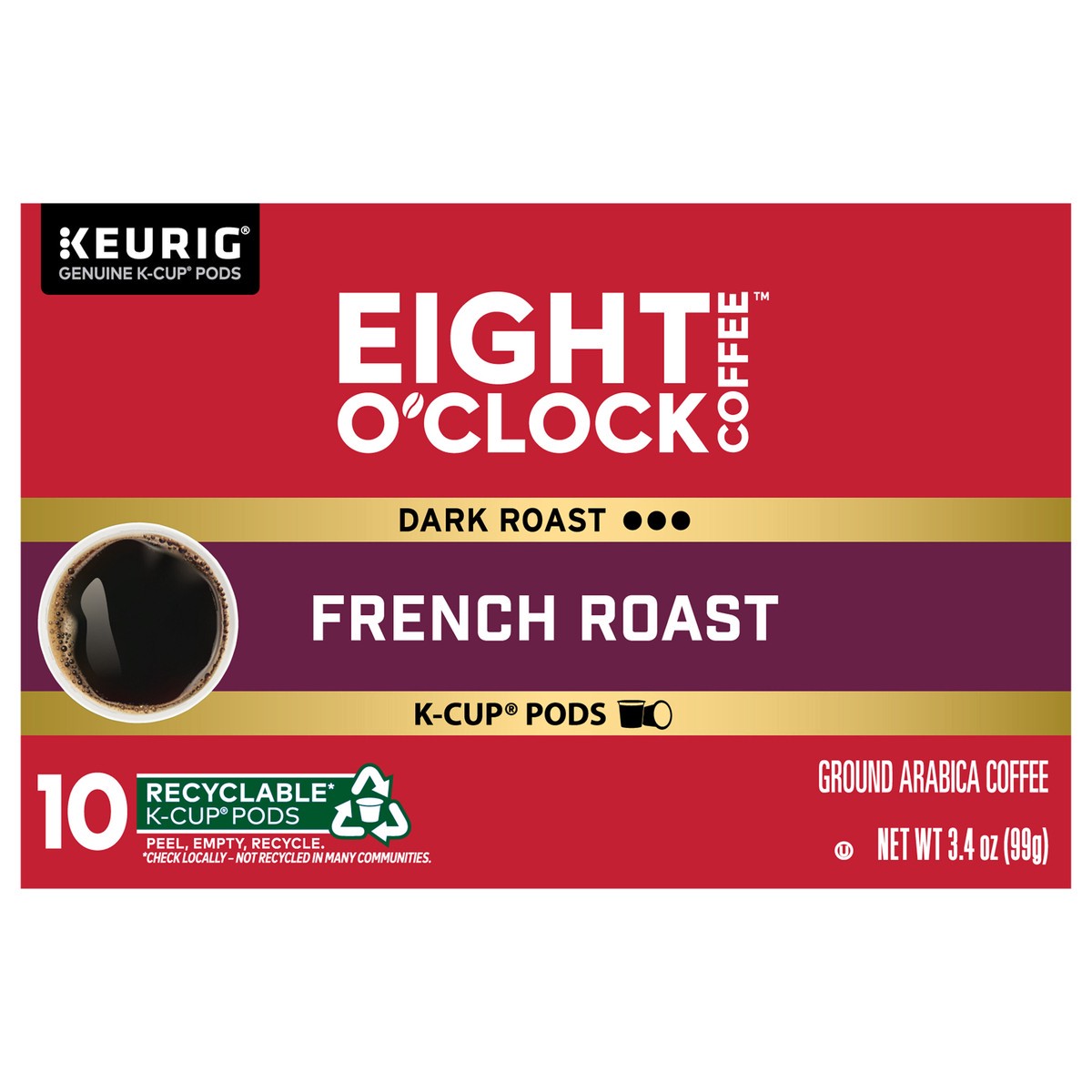 Eight O'Clock French Roast Coffee, Keurig Single Serve K-Cup Pods, 10 Count