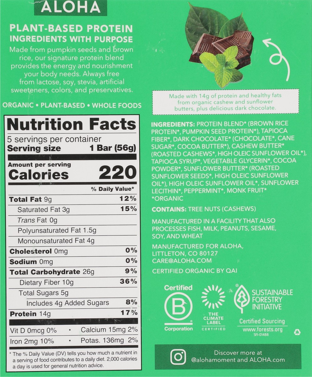 ALOHA Organic Plant-Based Chocolate Mint 14g Protein Bars - 5 ct