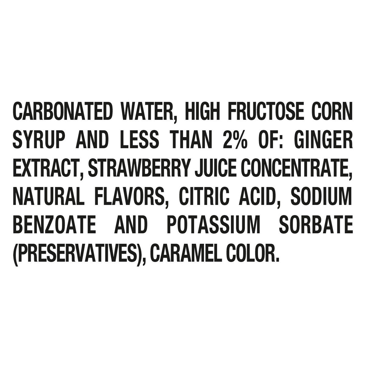 Carbonated Water, High Fructose Corn Syrup and Less than 2% of: Ginger Extract, Strawberry Juice Concentrate, Natural Flavors, Citric Acid, Sodium Benzoate and Potassium Sorbate (Preservatives), Caram…
