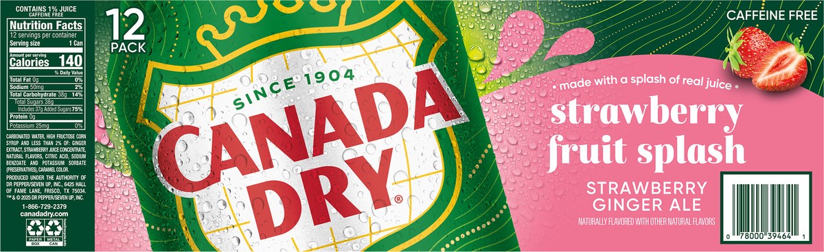 Canada Dry Fruit Splash Strawberry Ginger Ale Soda, 12 fl oz Cans, 12 Pack
